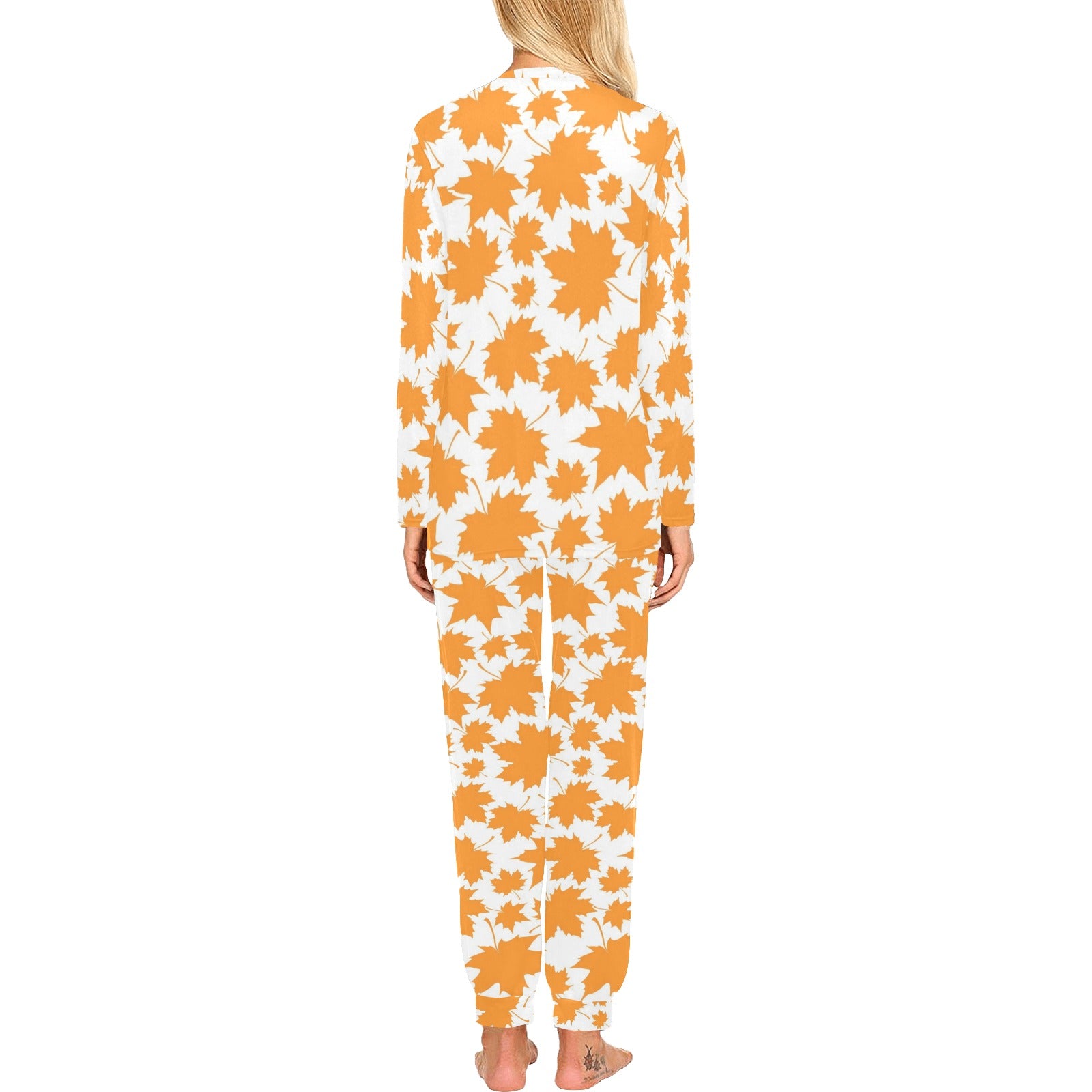 Orange Maple Leaf pattern Women's All Over Print Pajama Set