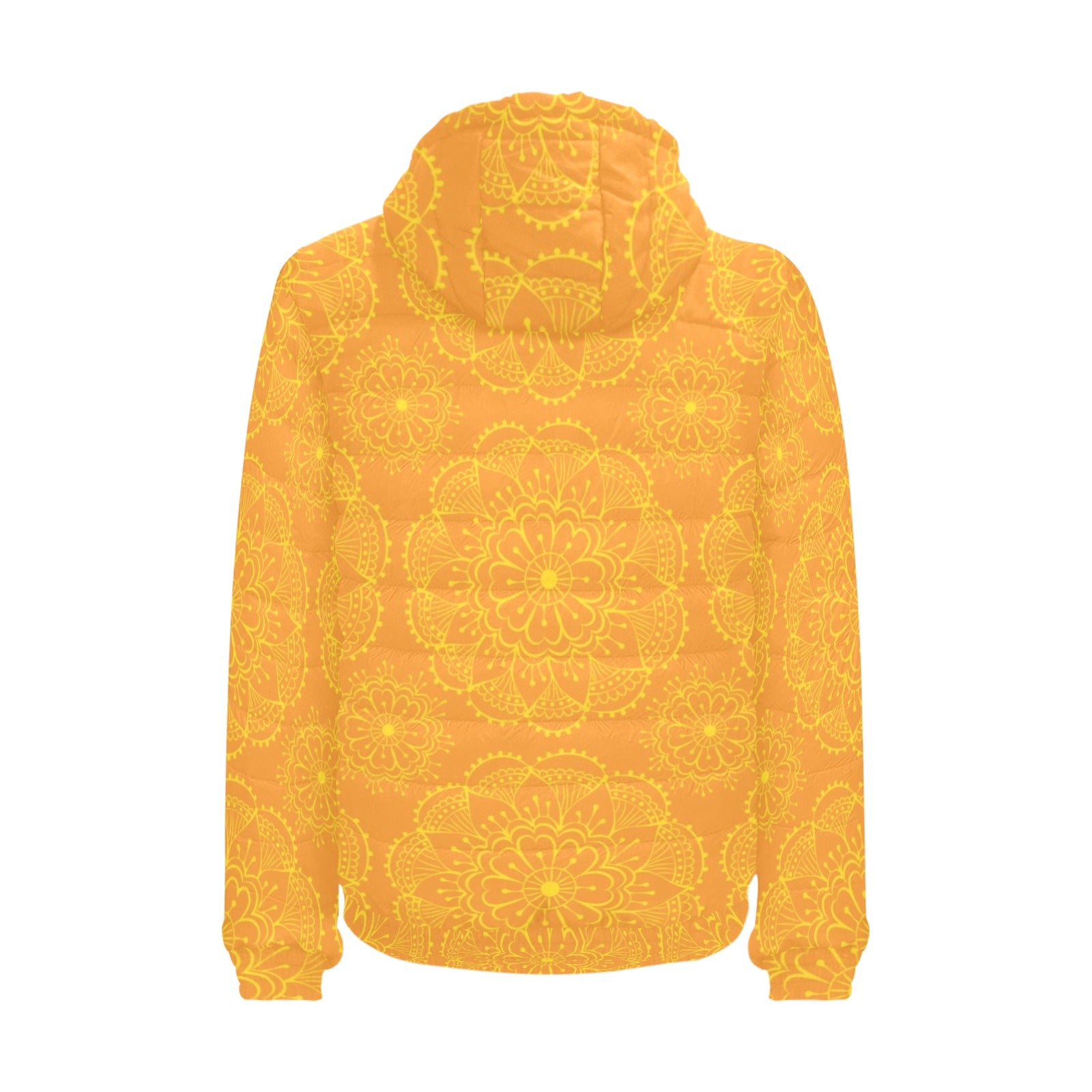 Orange traditional indian element pattern Men's Padded Hooded Jacket