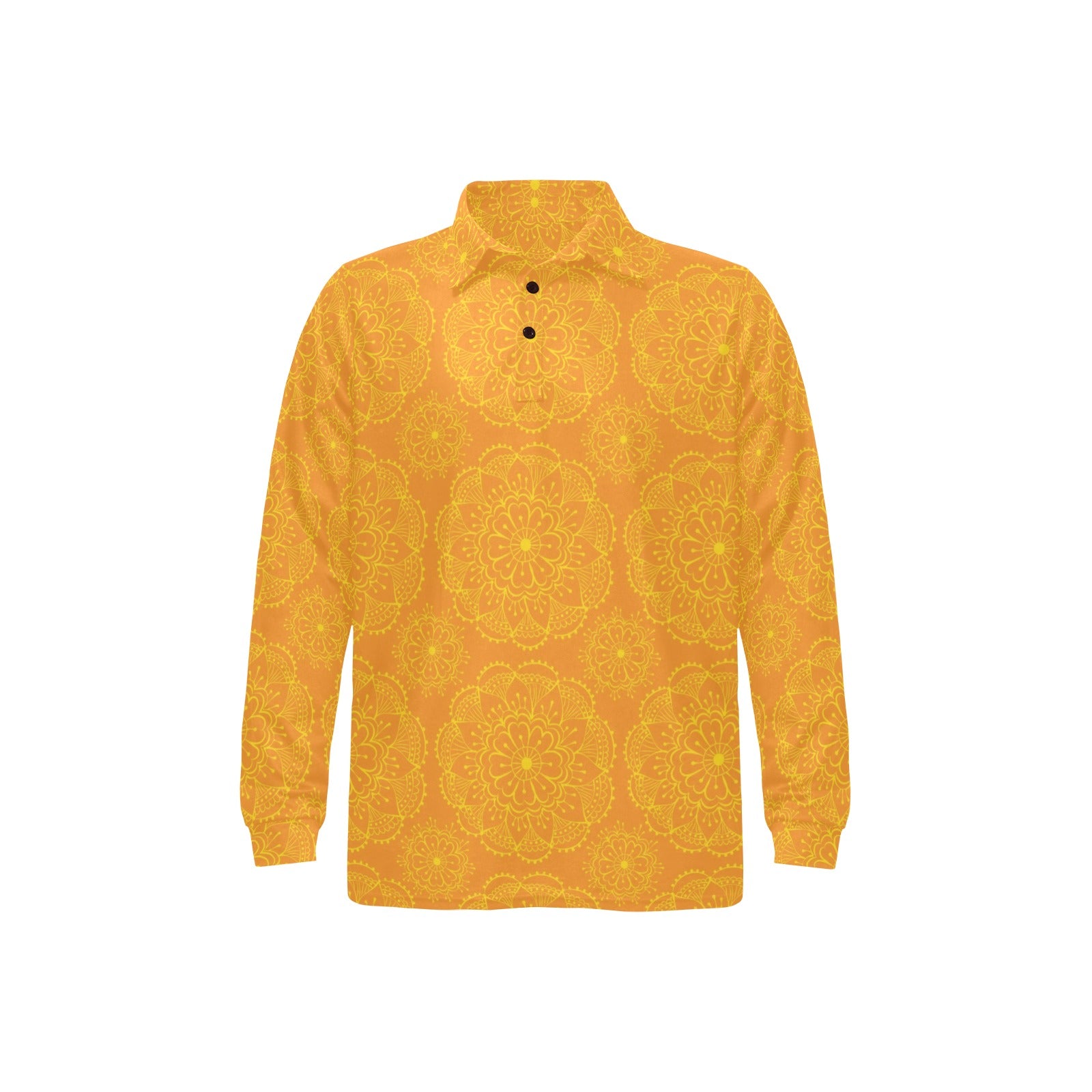 Orange traditional indian element pattern Men's Long Sleeve Polo Shirt