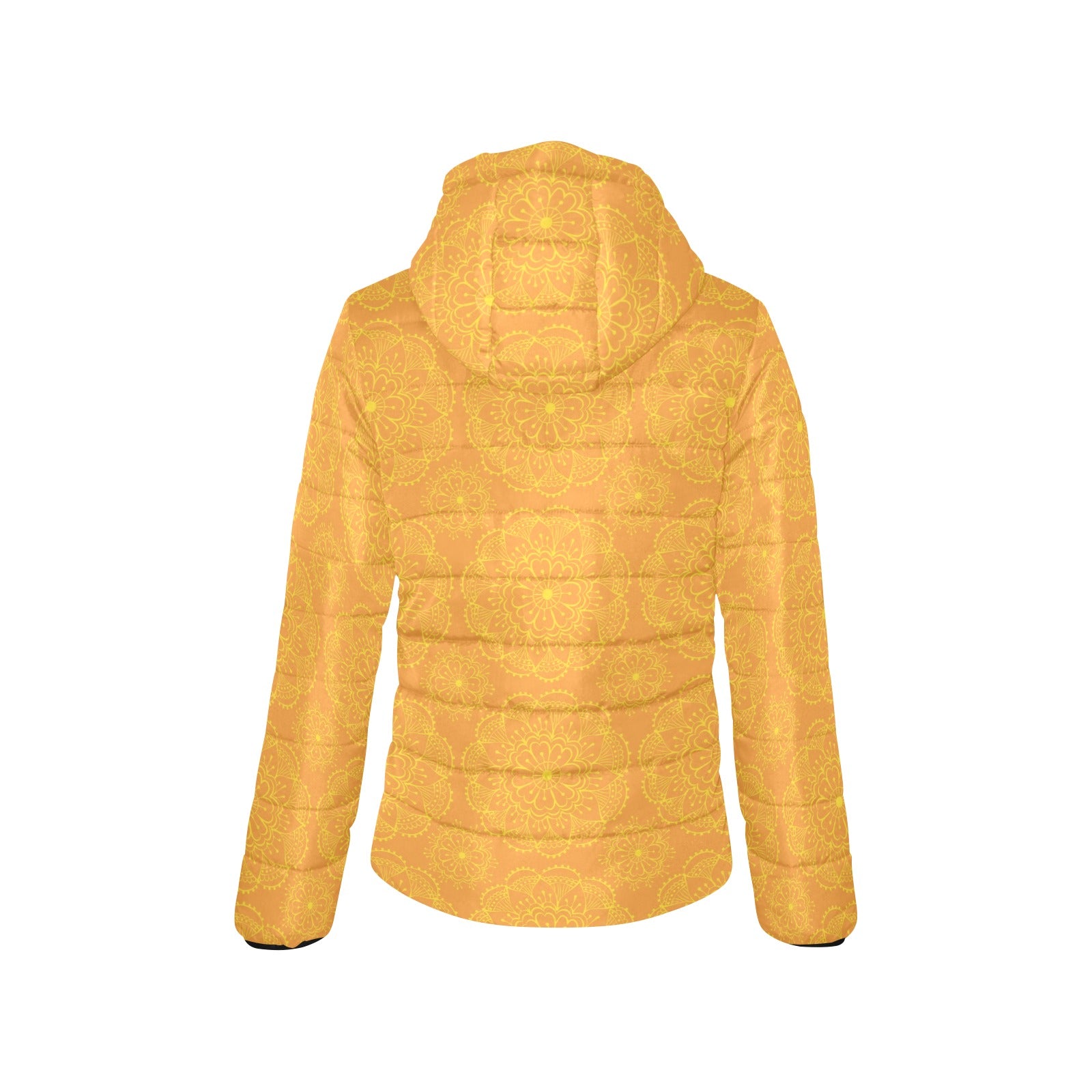Orange traditional indian element pattern Women's Padded Hooded Jacket