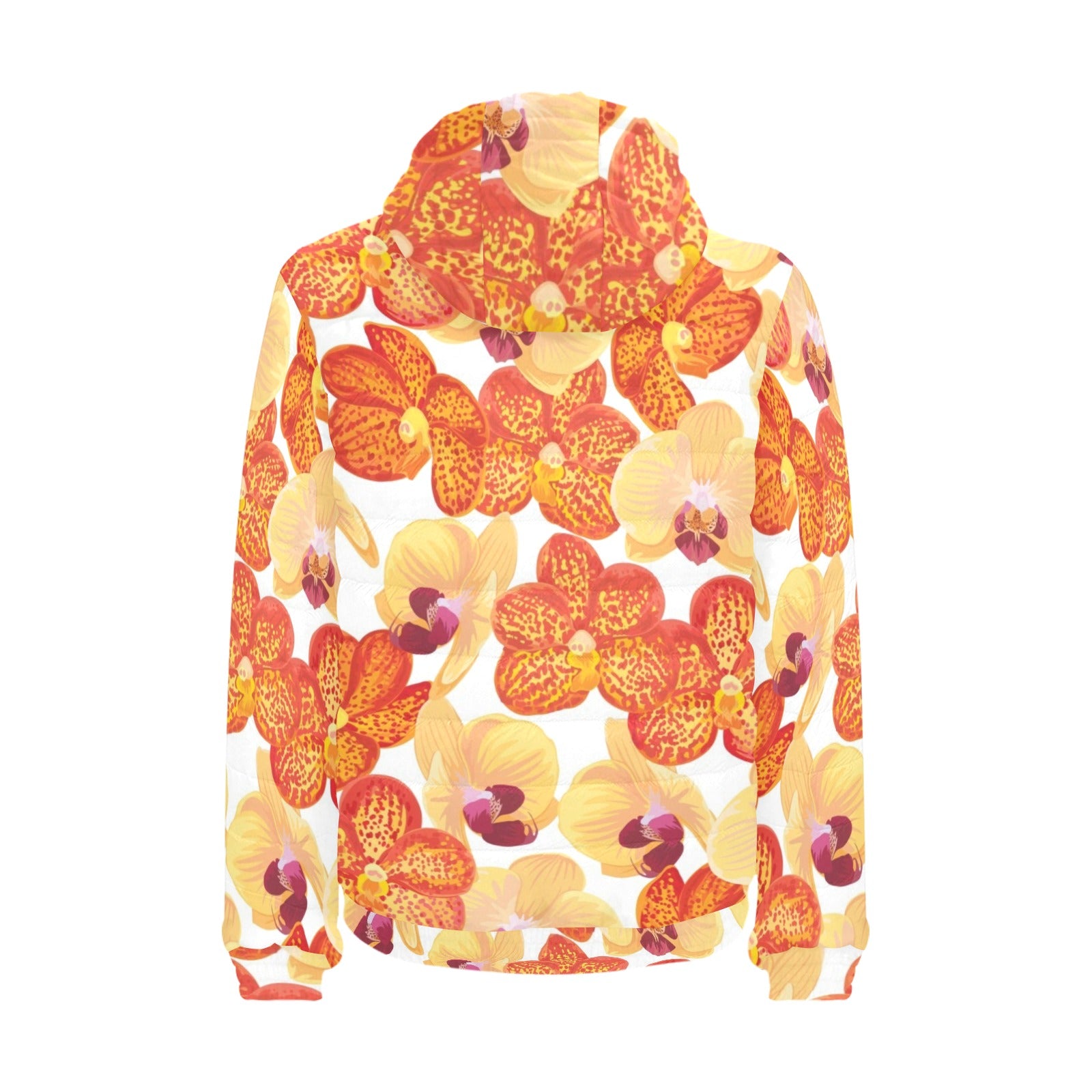 Orange yellow orchid flower pattern background Men's Padded Hooded Jacket