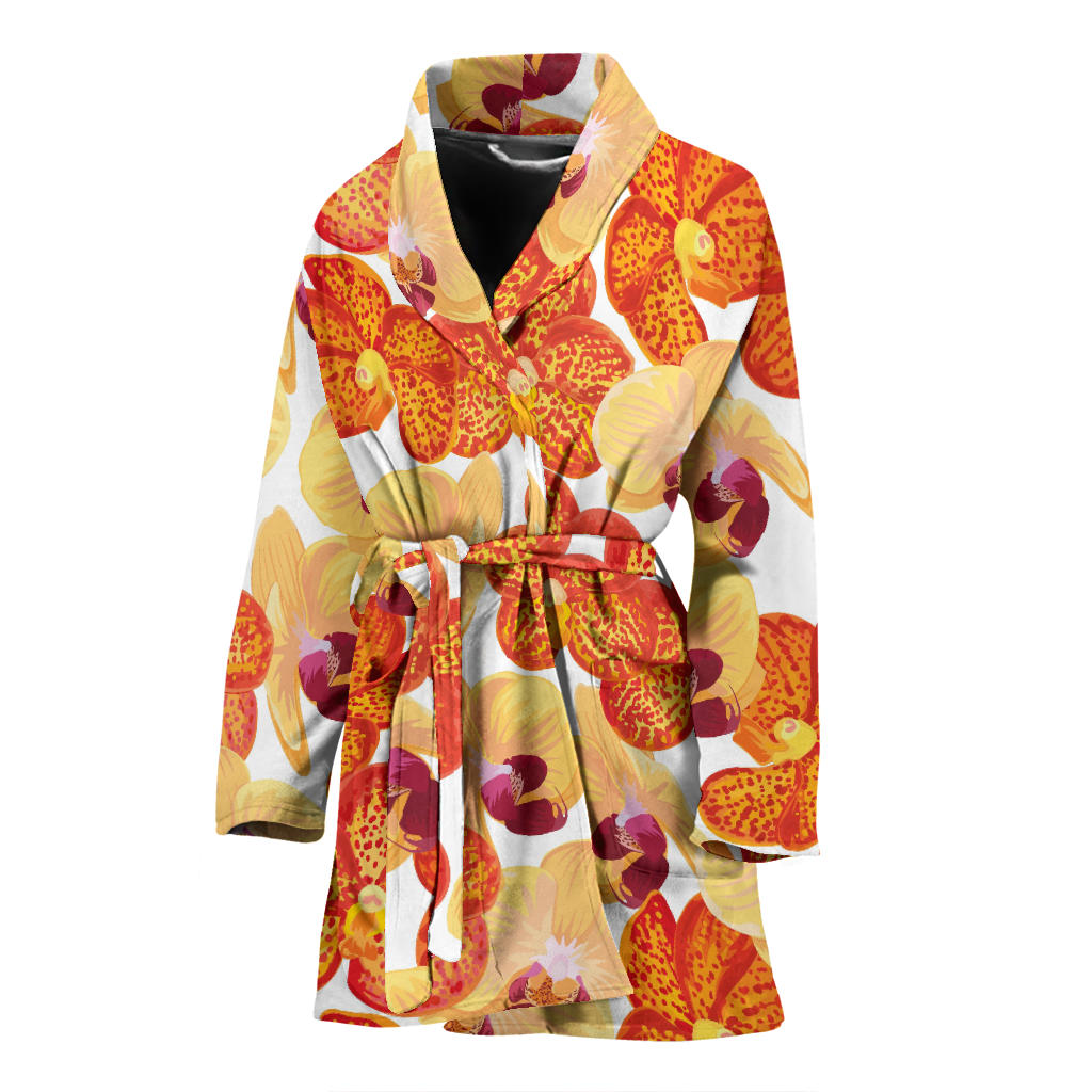 Orange Yellow Orchid Flower Pattern Background Women'S Bathrobe