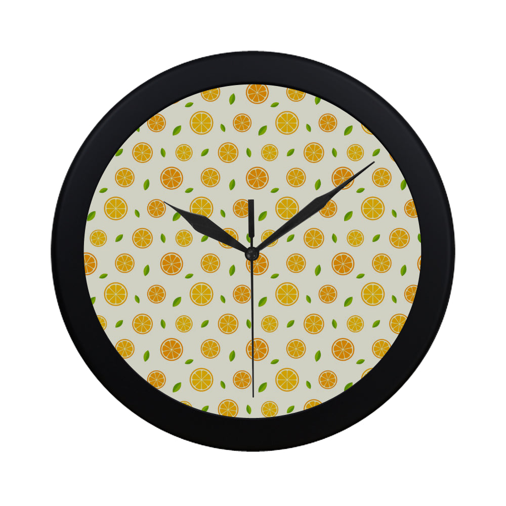 oranges leaves pattern Elegant Black Wall Clock is a uniqued design and limited item. It made to order, hand printed, and sewn with love in our factory.
