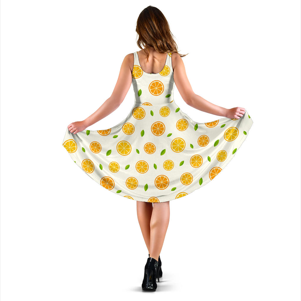 Oranges Leaves Pattern Sleeveless Midi Dress
