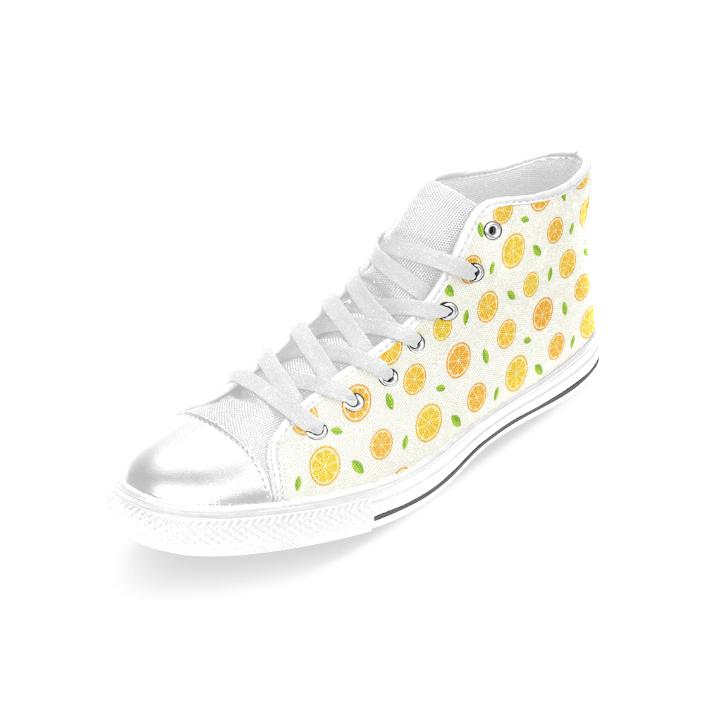 oranges leaves pattern Women's High Top Canvas Shoes White