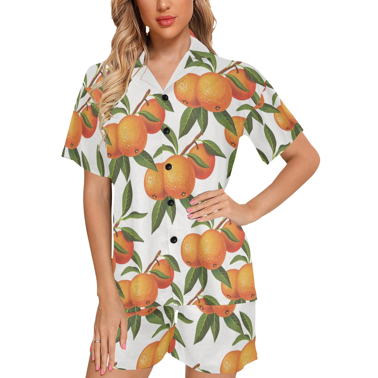 Oranges pattern background Women's V-Neck Short Pajama Set