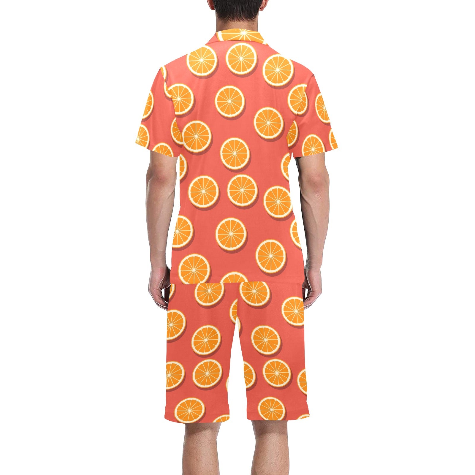 Oranges pattern red background Men's V-Neck Short Pajama Set