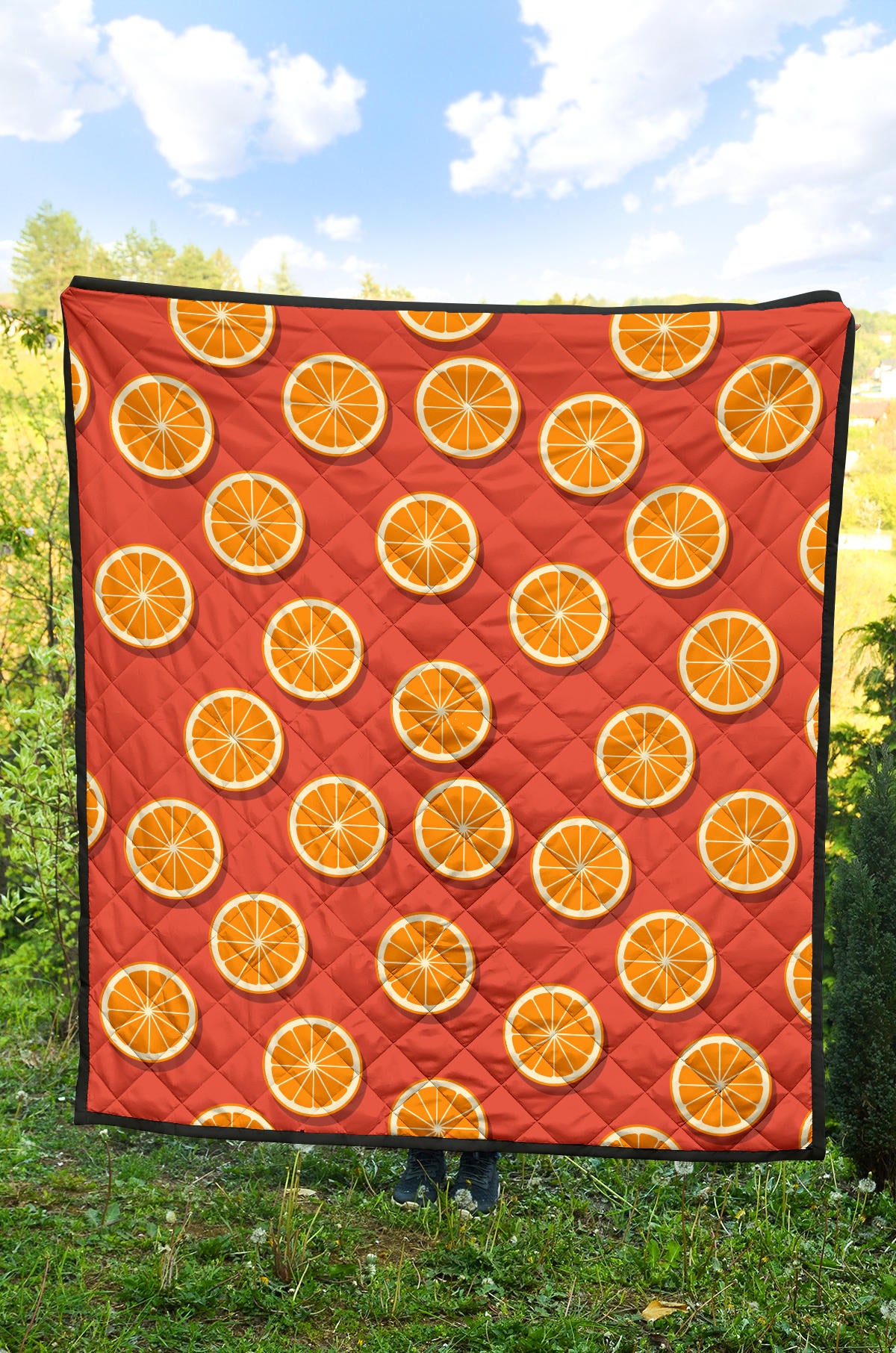 Oranges Pattern Red Background Premium Quilt is a uniqued design and limited item. It made to order, hand printed, and sewn with love in our factory.