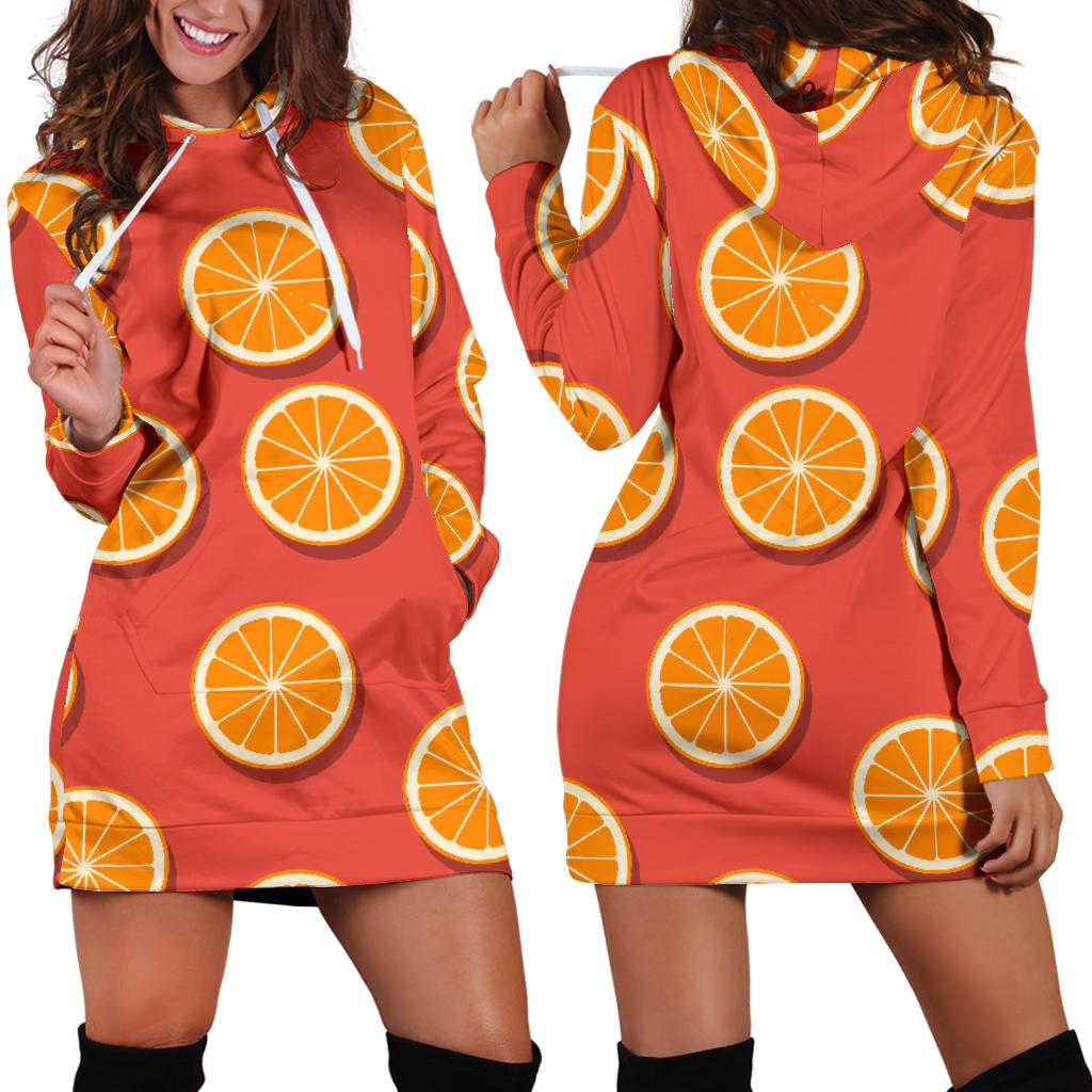 Oranges pattern red background Women's Hoodie Dress is a uniqued design and limited item. It made to order, hand printed, and sewn with love in our factory.