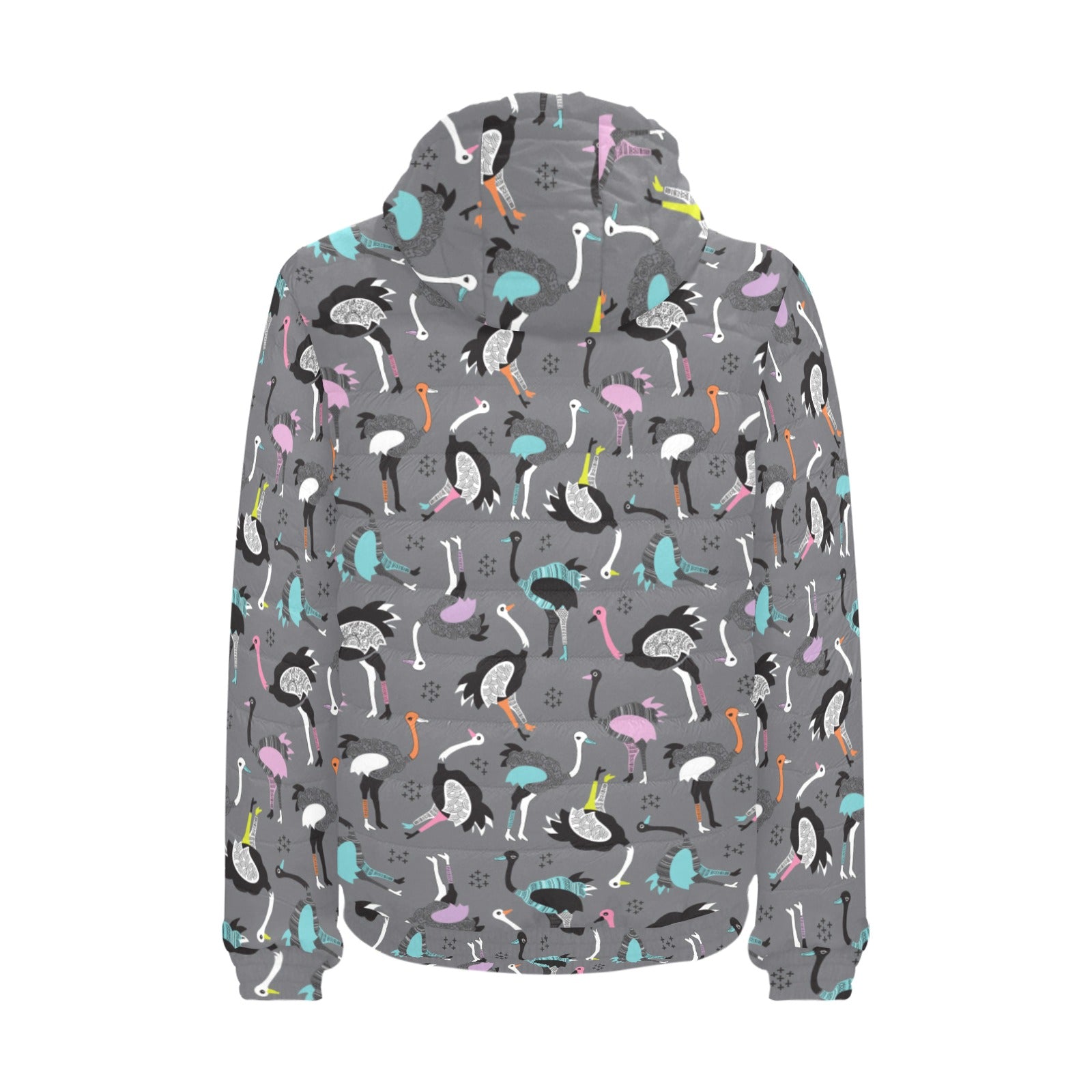 Ostrich Pattern Print Design 01 Men's Padded Hooded Jacket