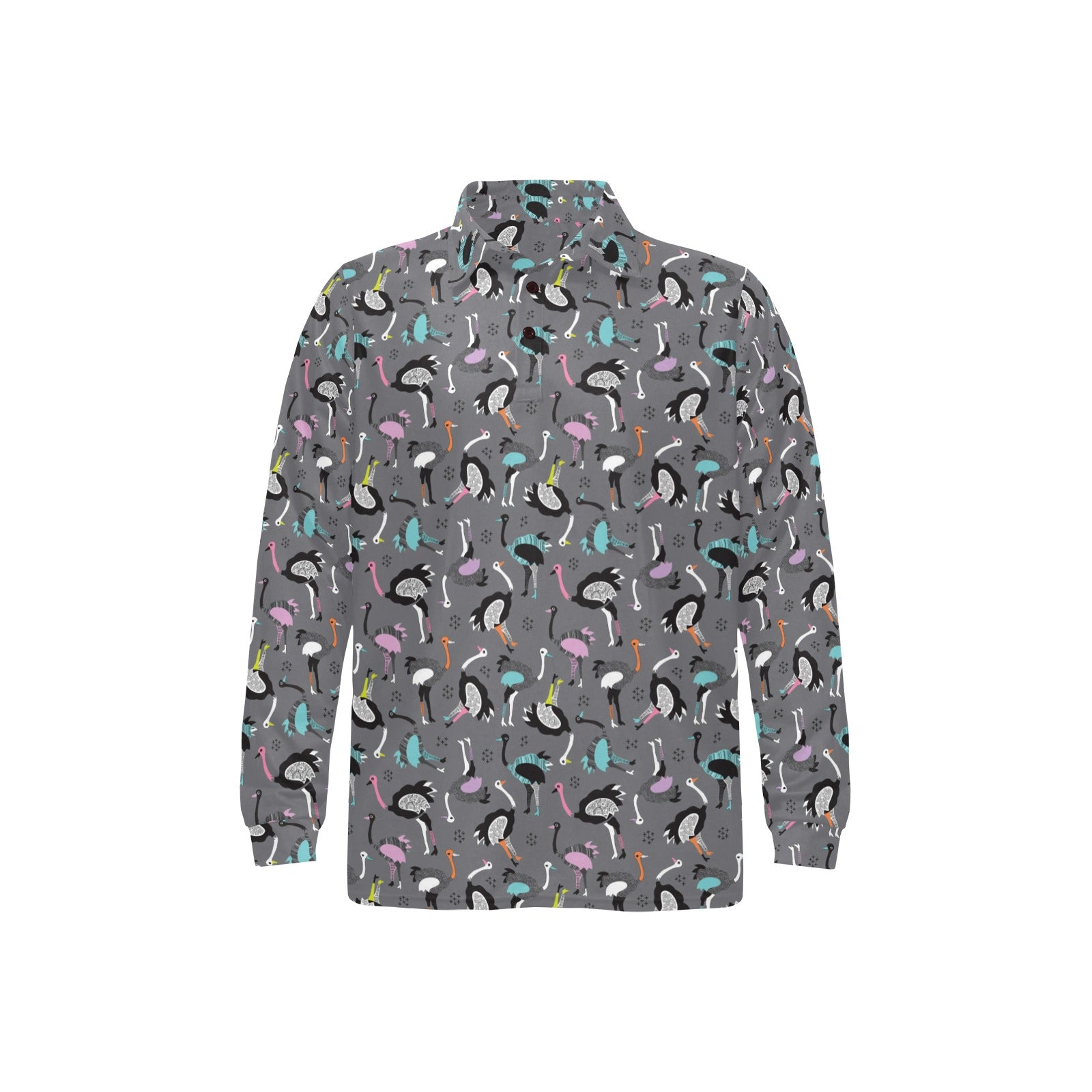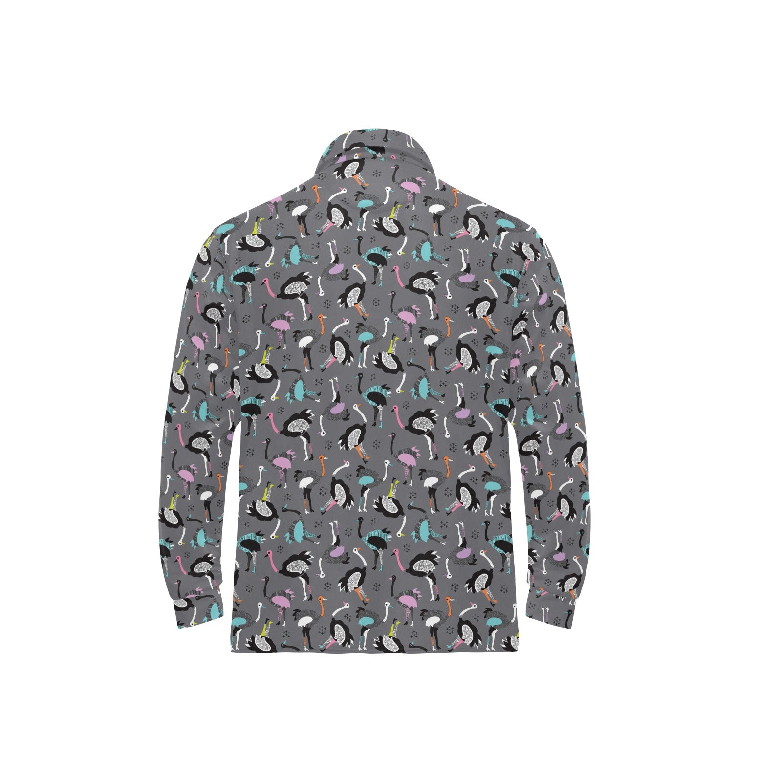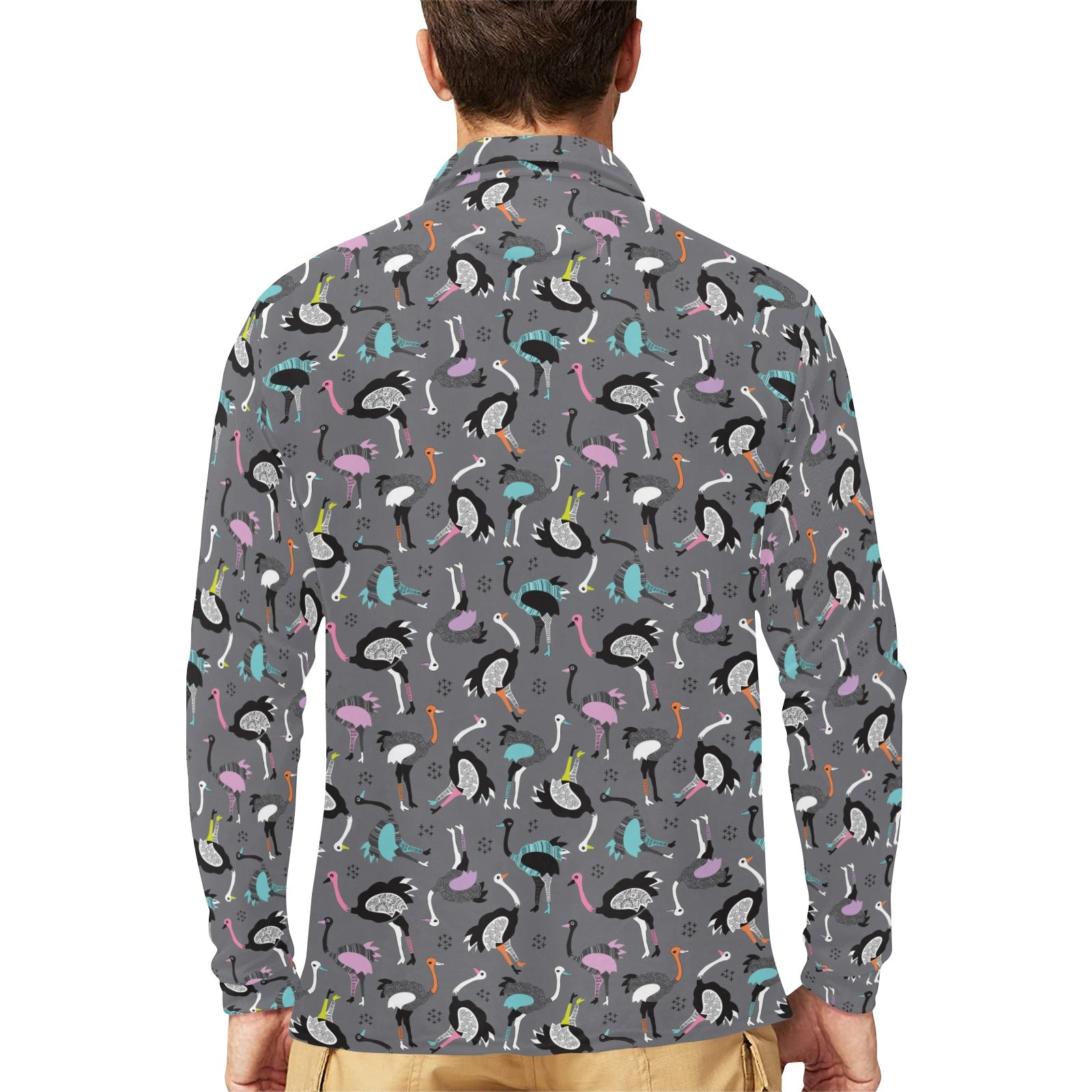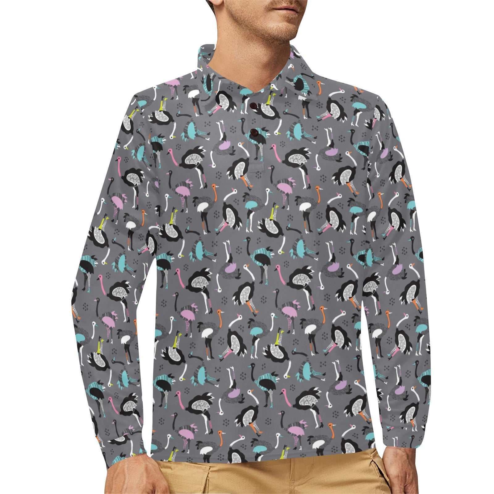 Ostrich Pattern Print Design 01 Men's Long Sleeve Polo Shirt