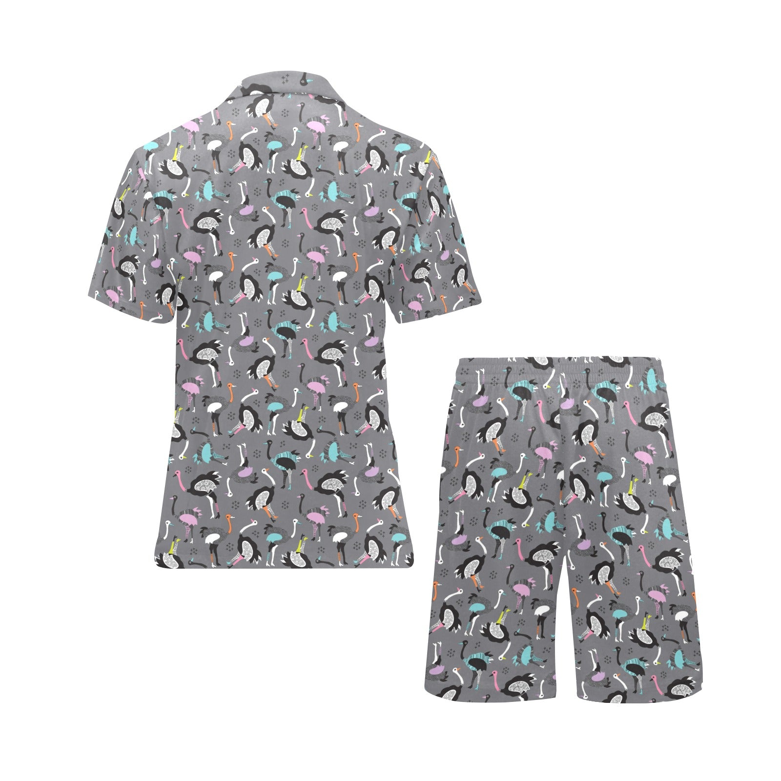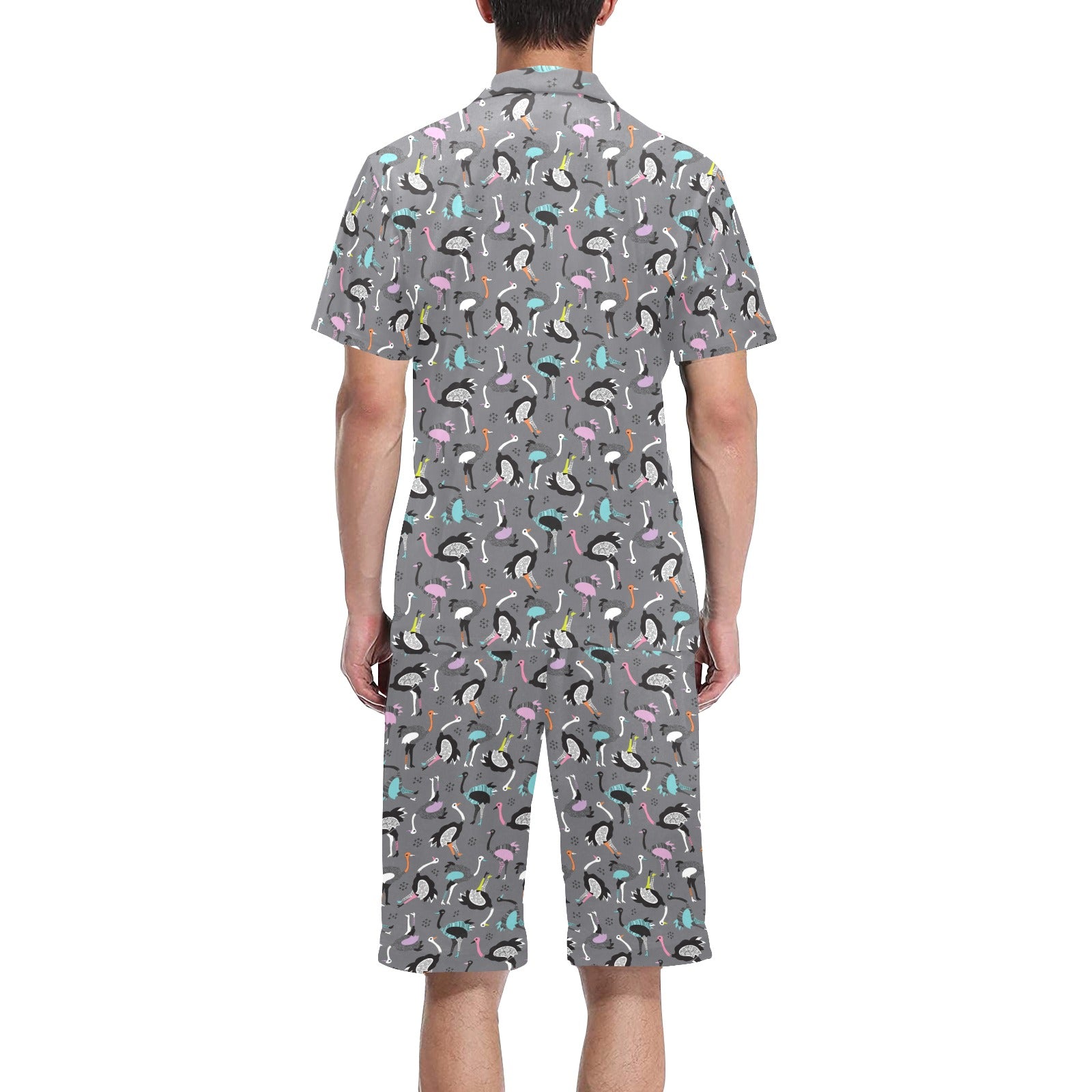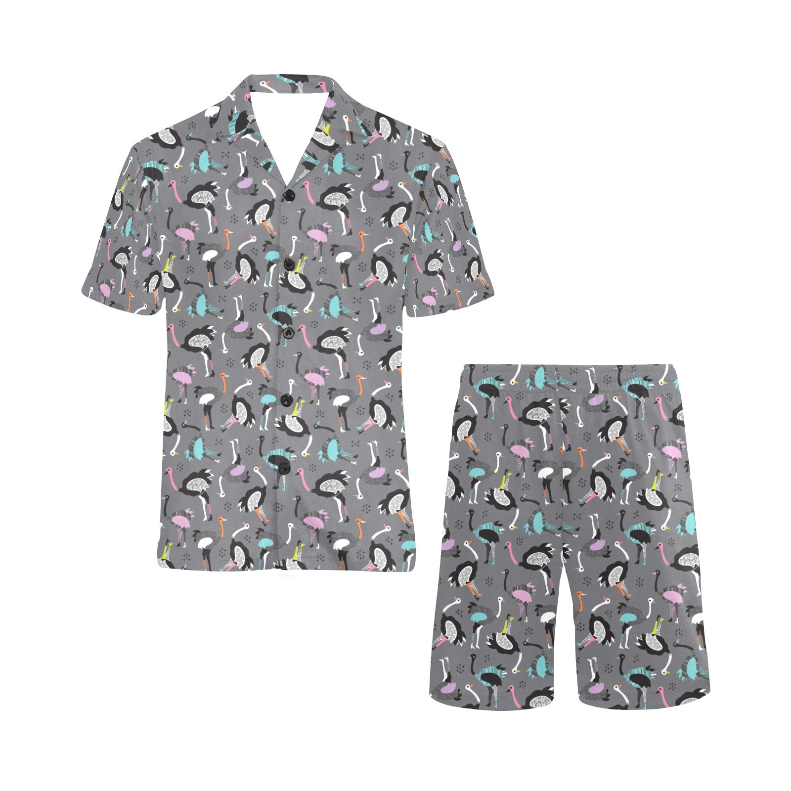 Ostrich Pattern Print Design 01 Men's V-Neck Short Pajama Set