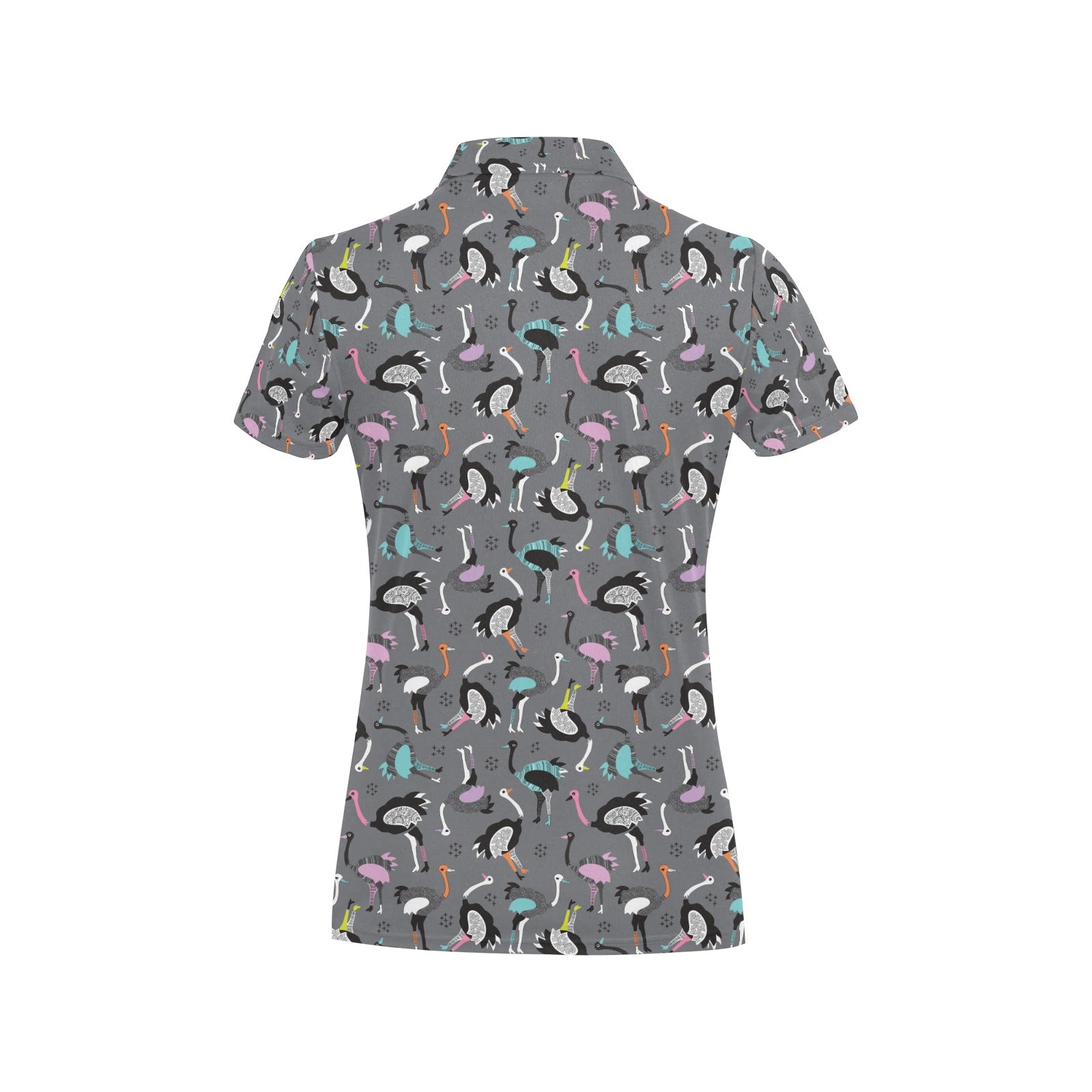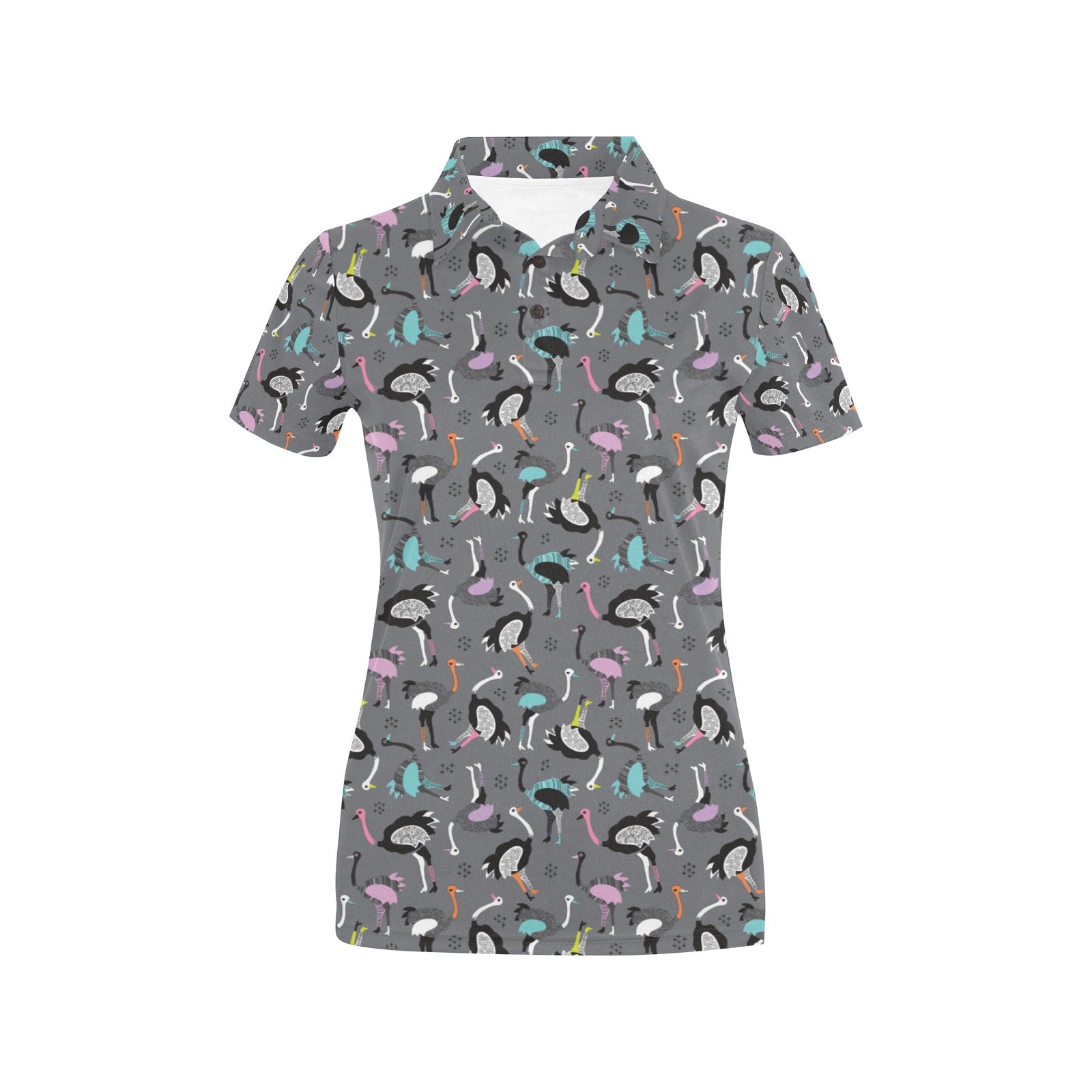 Ostrich Pattern Print Design 01 Women's All Over Print Polo Shirt