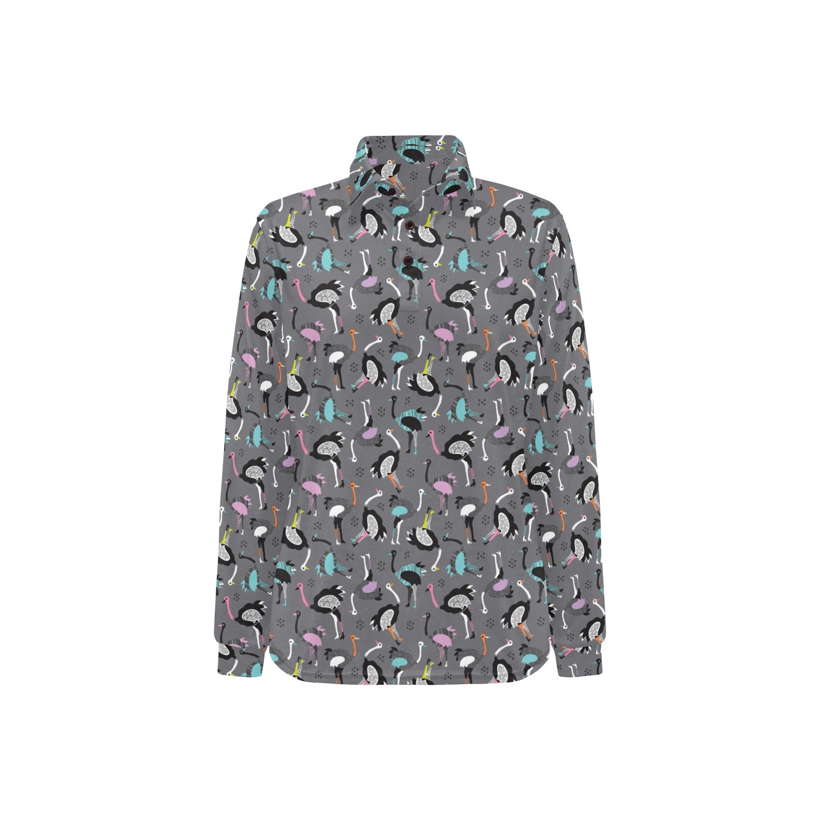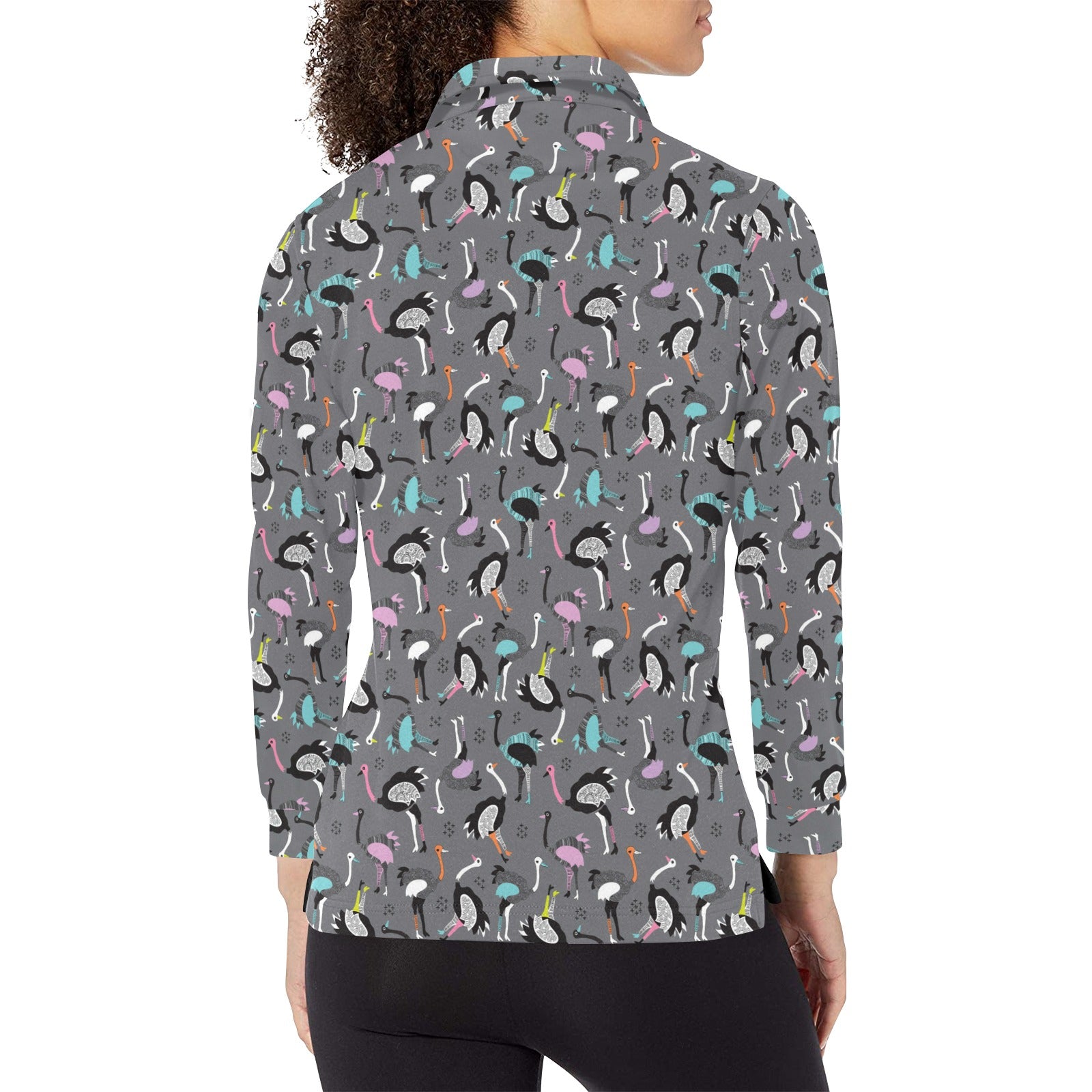 Ostrich Pattern Print Design 01 Women's Long Sleeve Polo Shirt