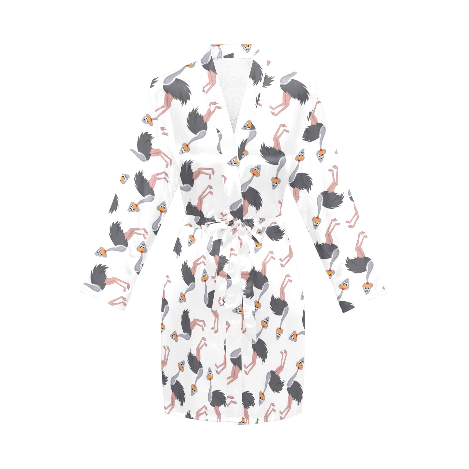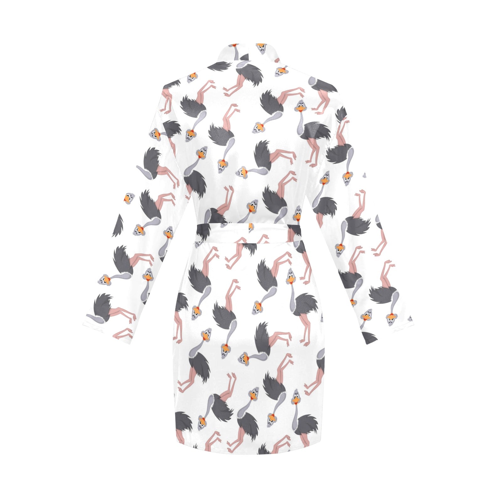 Ostrich Pattern Print Design 02 Women's Long Sleeve Belted Night Robe