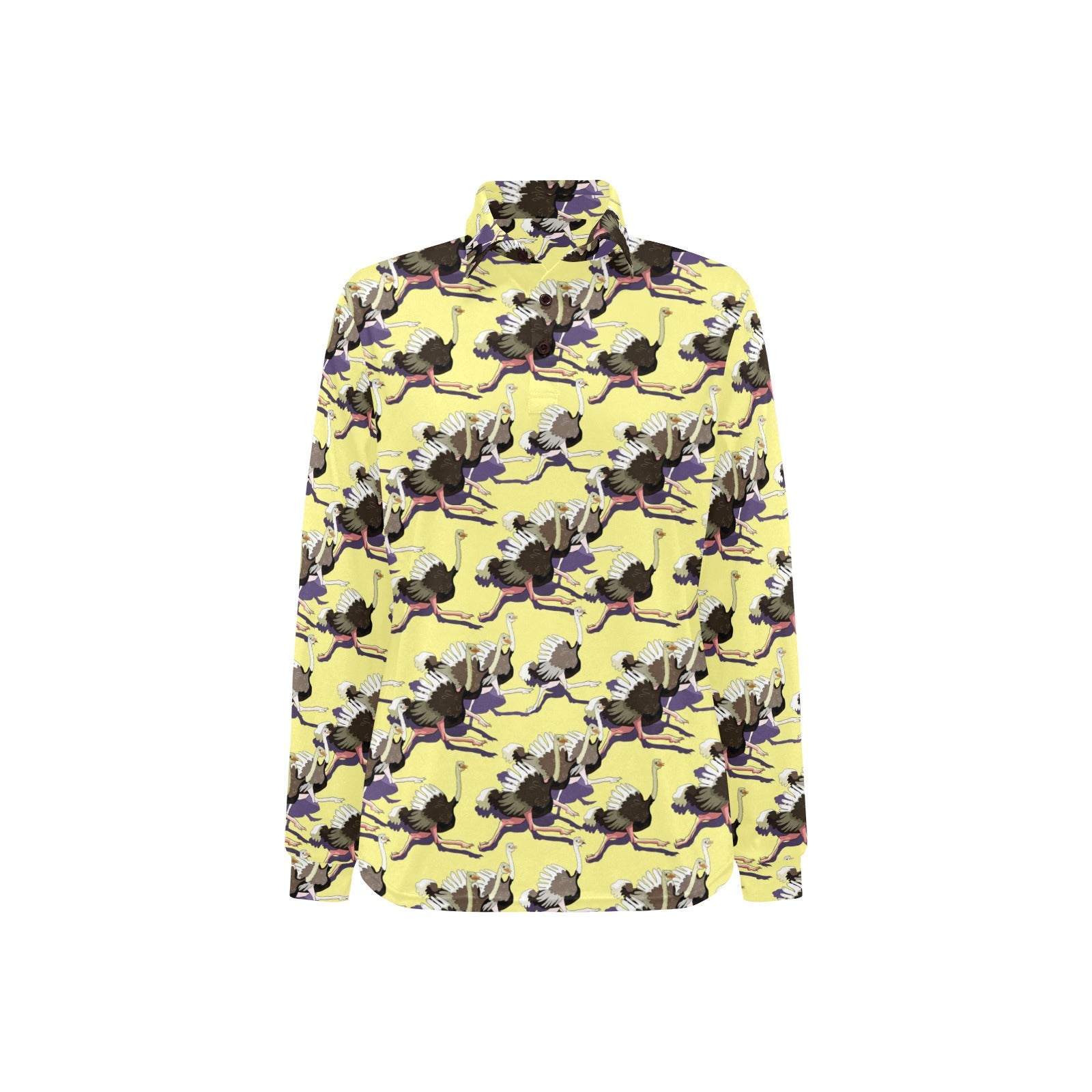 Ostrich Pattern Print Design 04 Women's Long Sleeve Polo Shirt