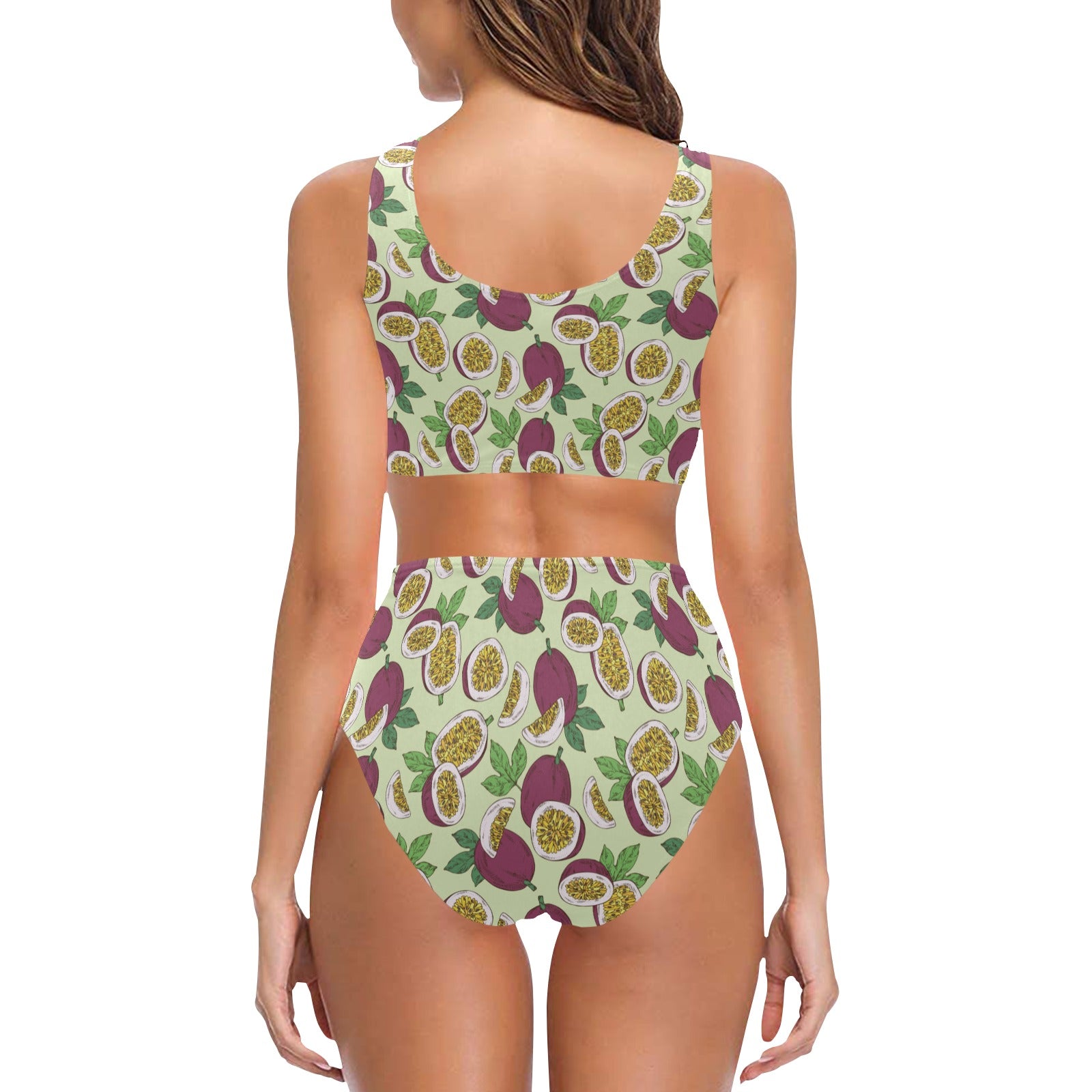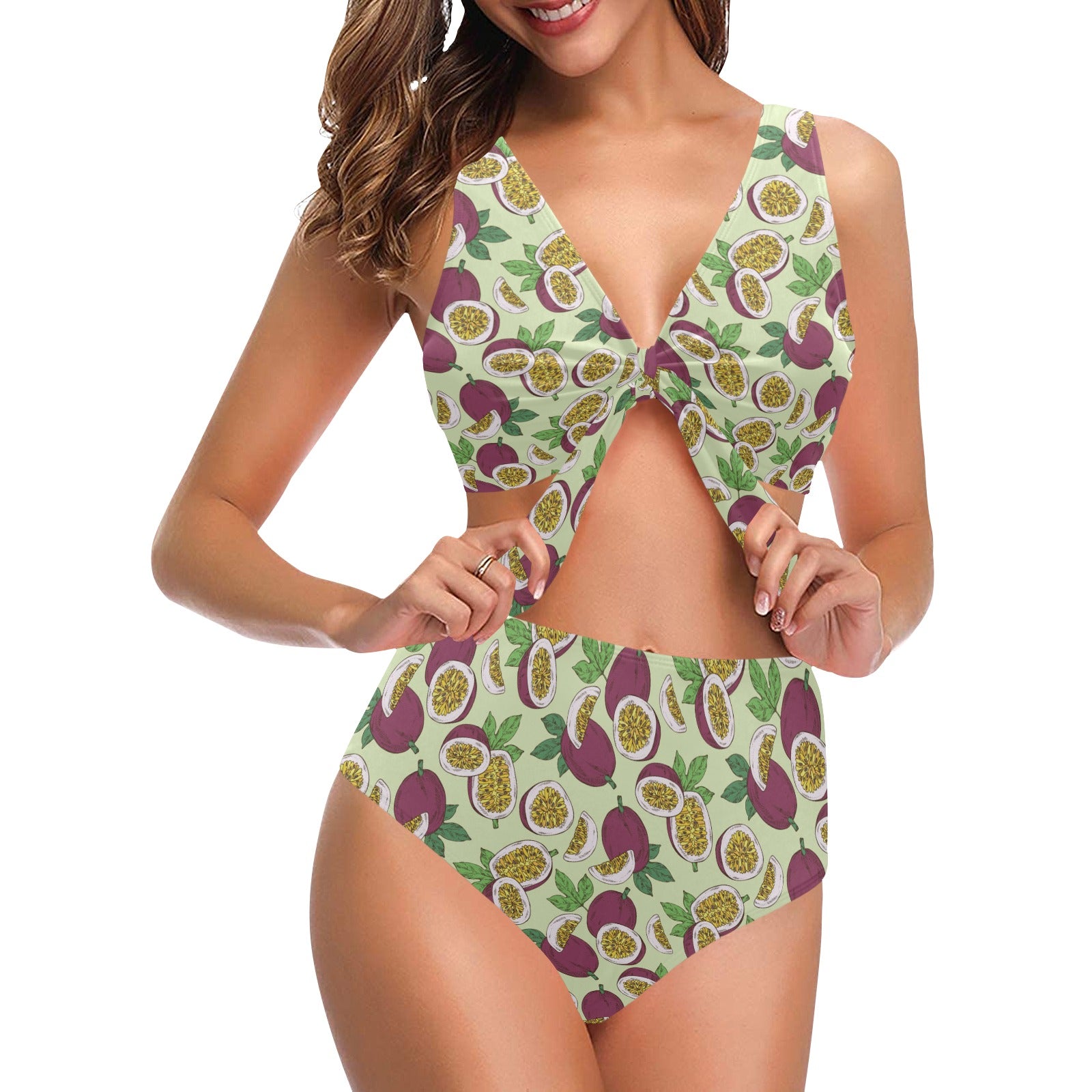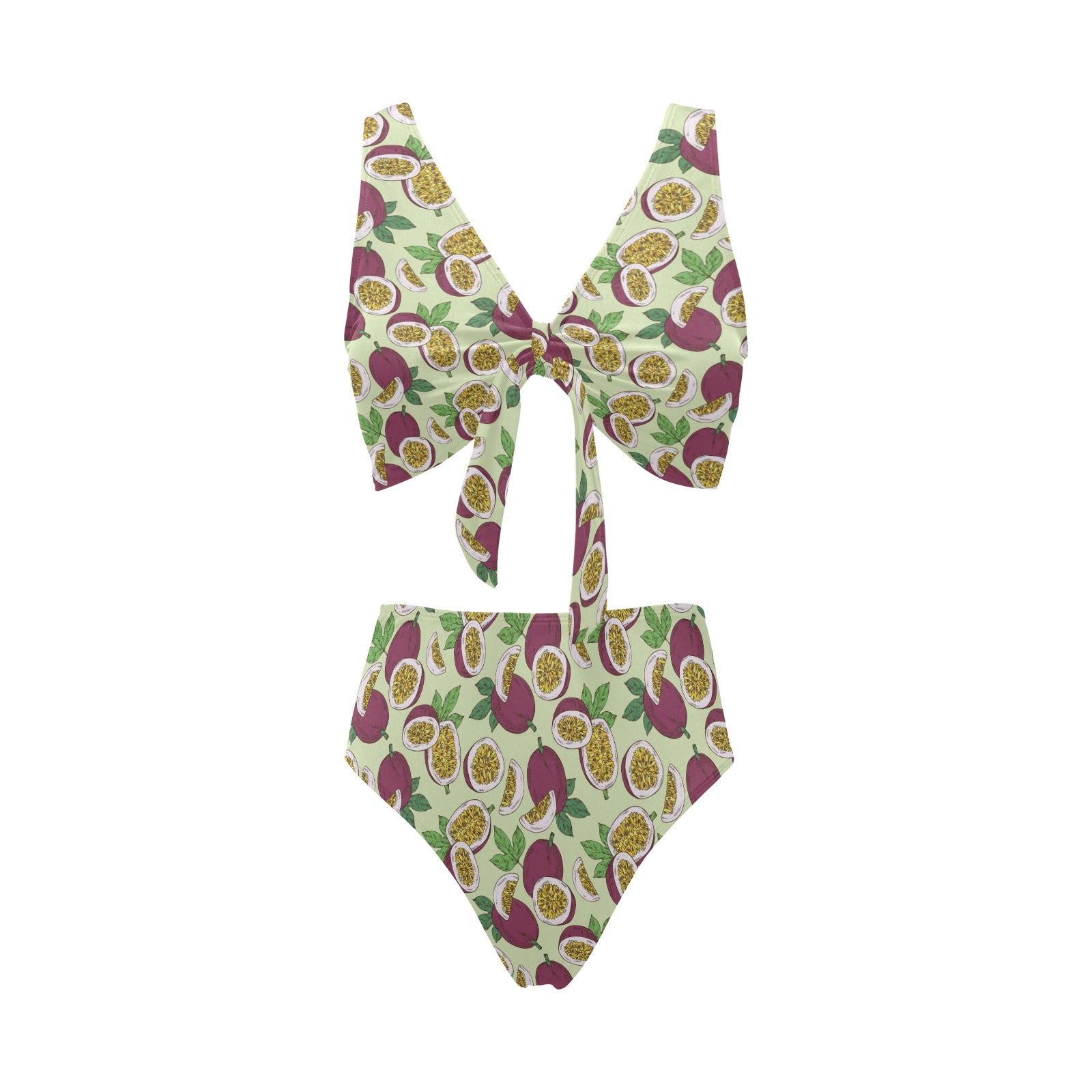 Paassion fruit pattern Chest Bowknot High Waisted Bikini Swimsuit