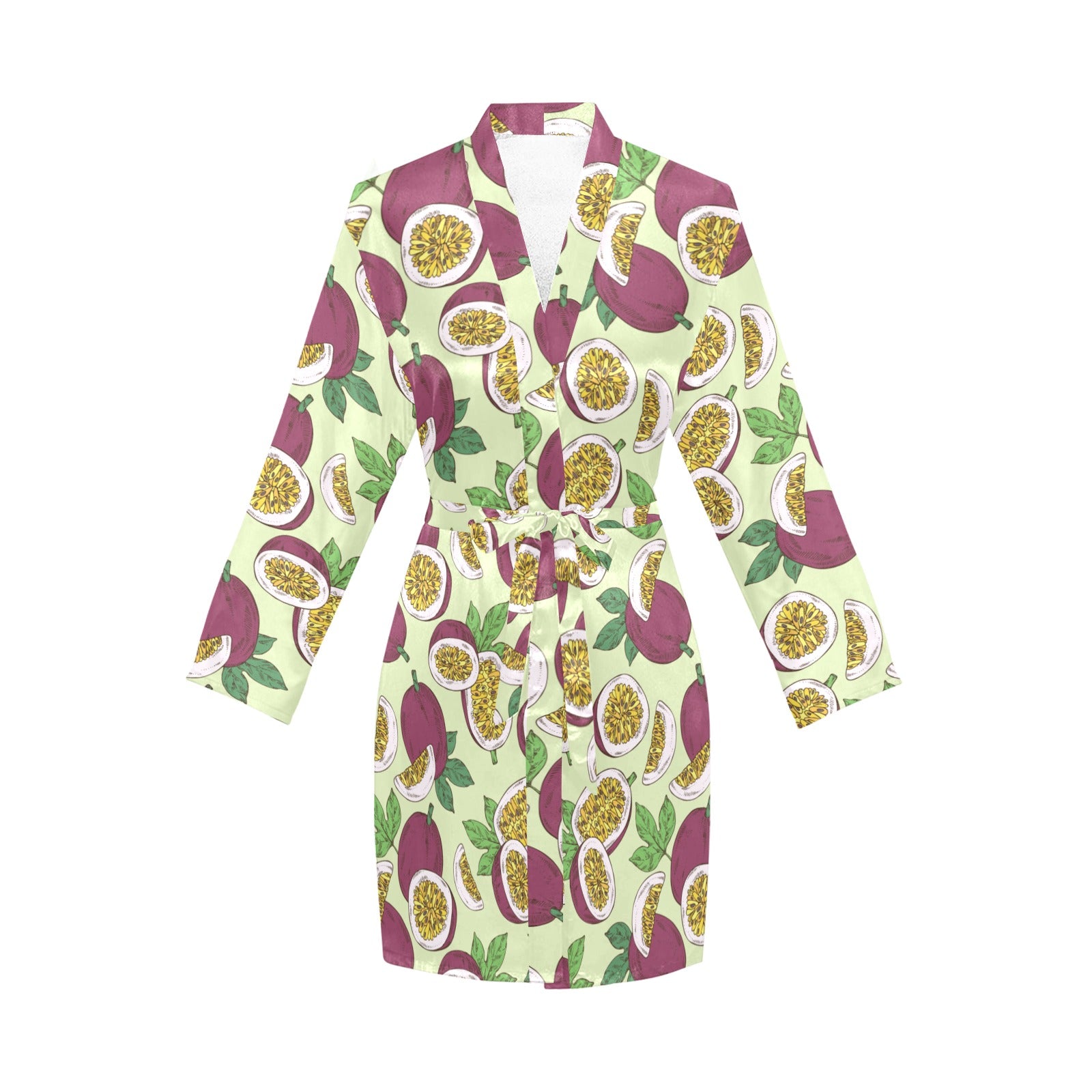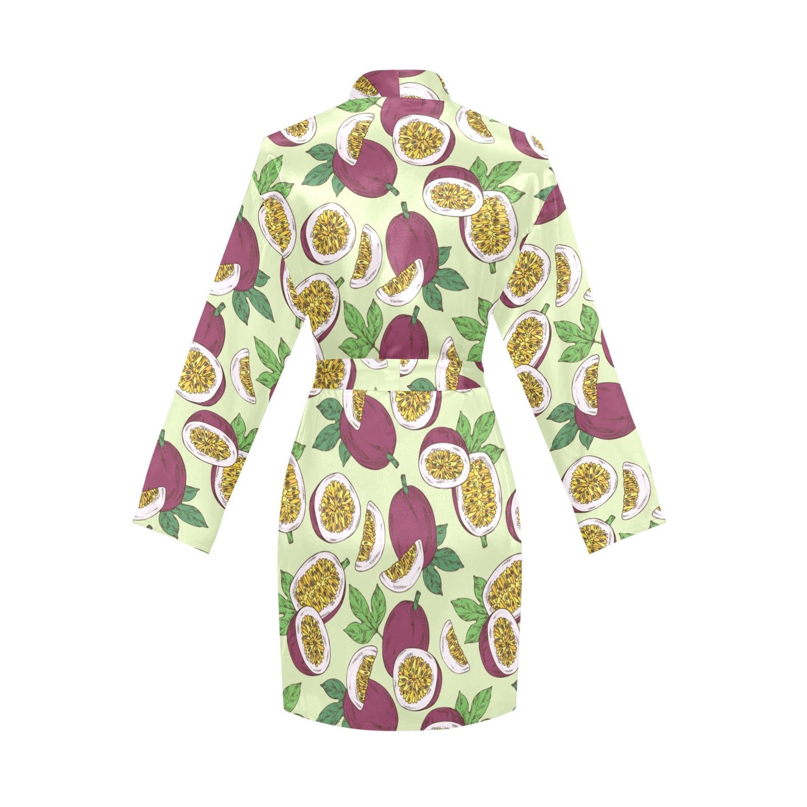 Paassion fruit pattern Women's Long Sleeve Belted Night Robe