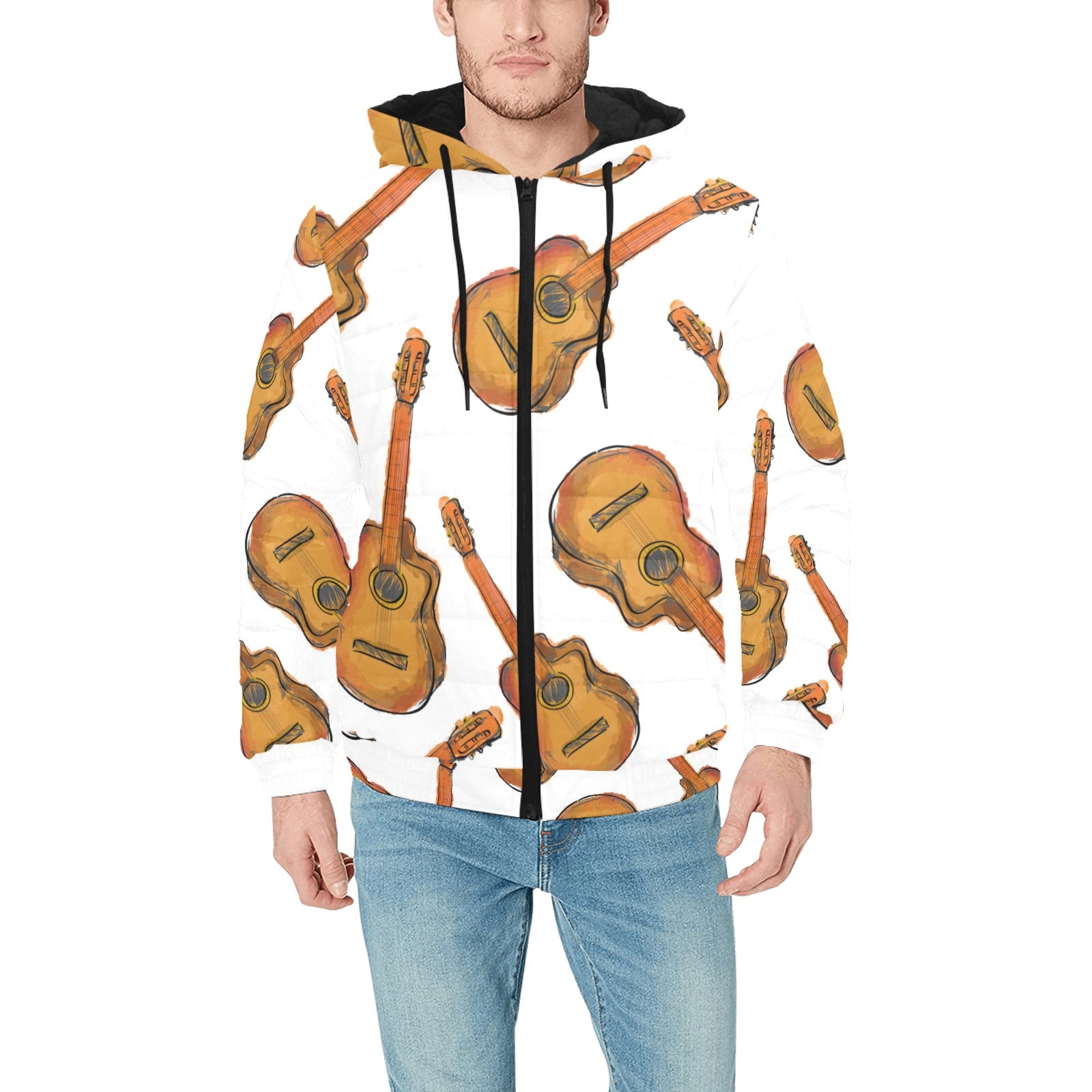 Paint Guitar Pattern Men's Padded Hooded Jacket