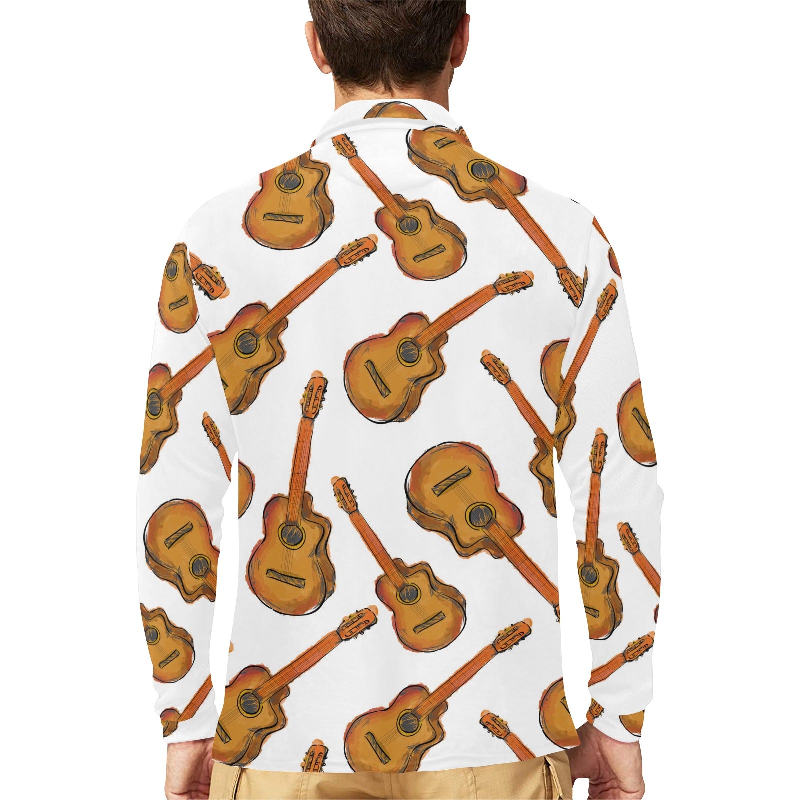 Paint Guitar Pattern Men's Long Sleeve Polo Shirt
