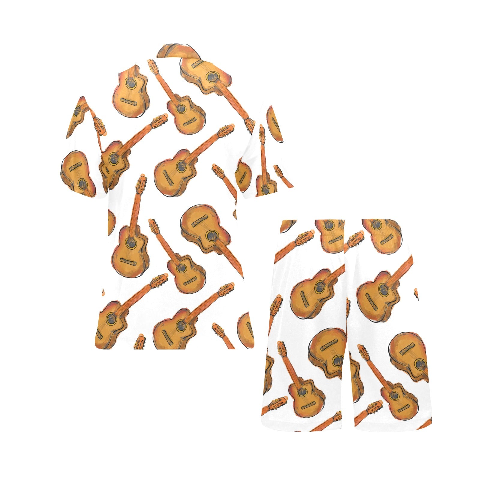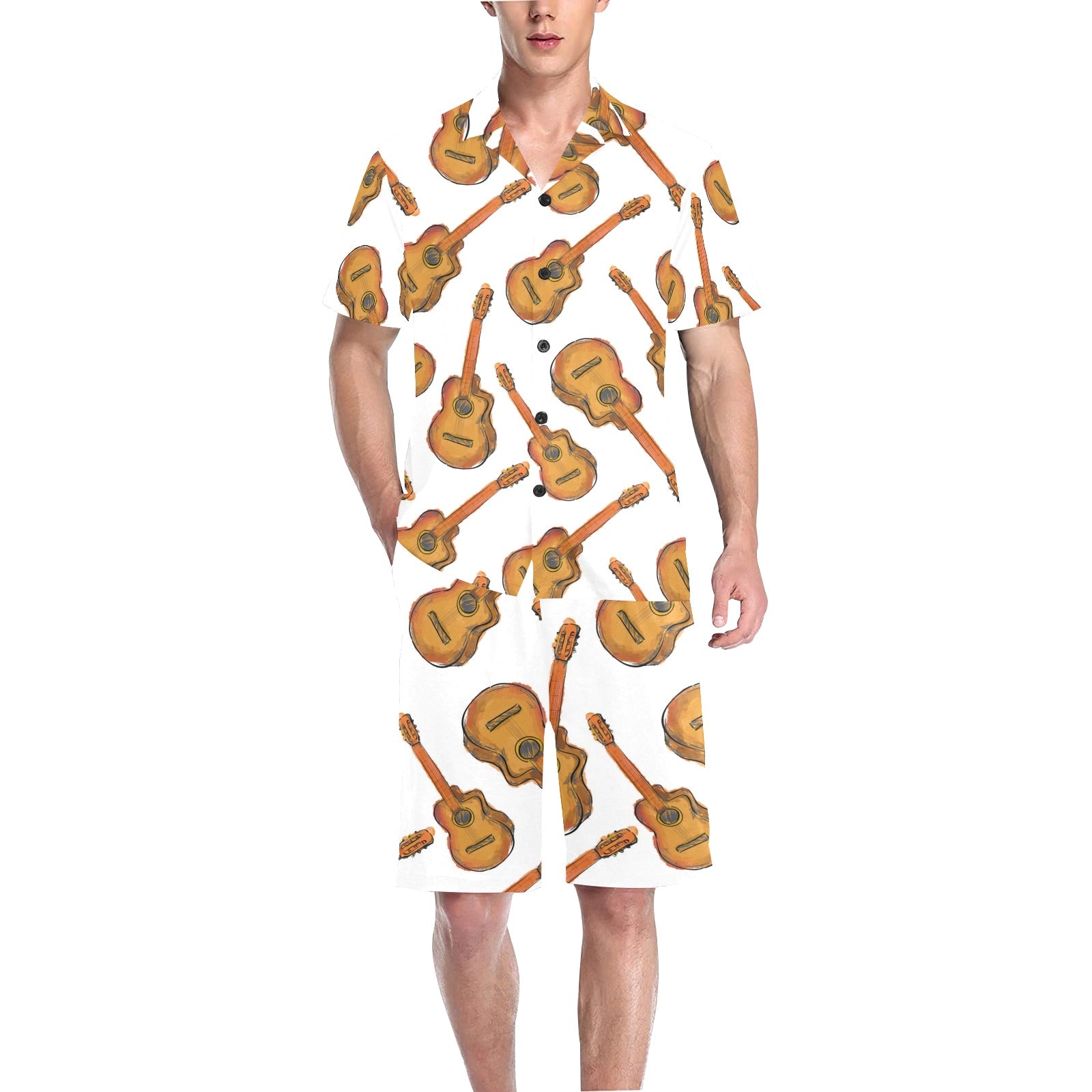 Paint Guitar Pattern Men's V-Neck Short Pajama Set