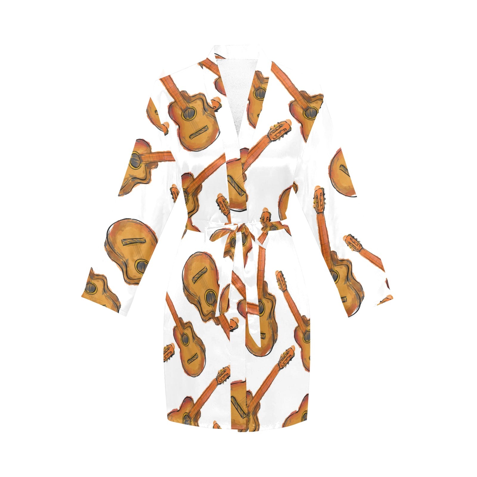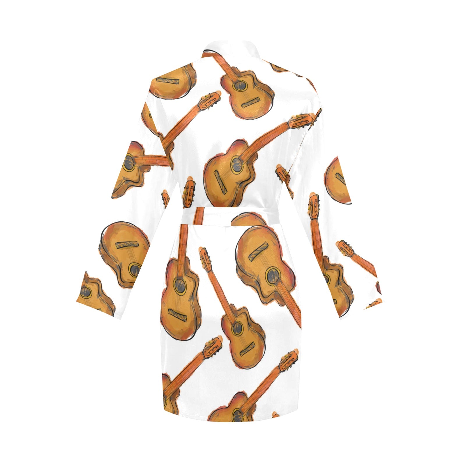 Paint Guitar Pattern Women's Long Sleeve Belted Night Robe