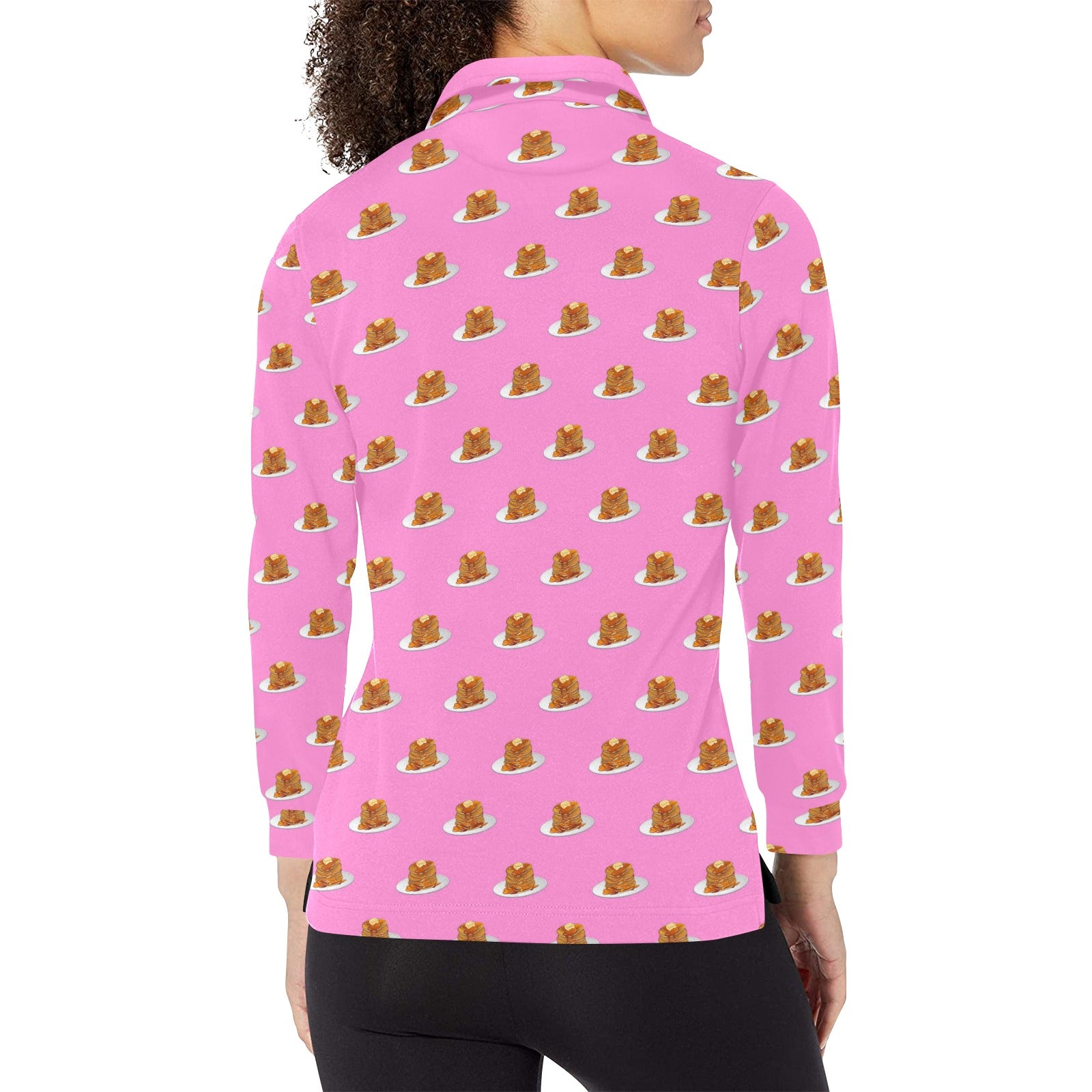 Pancake Pattern Print Design 04 Women's Long Sleeve Polo Shirt