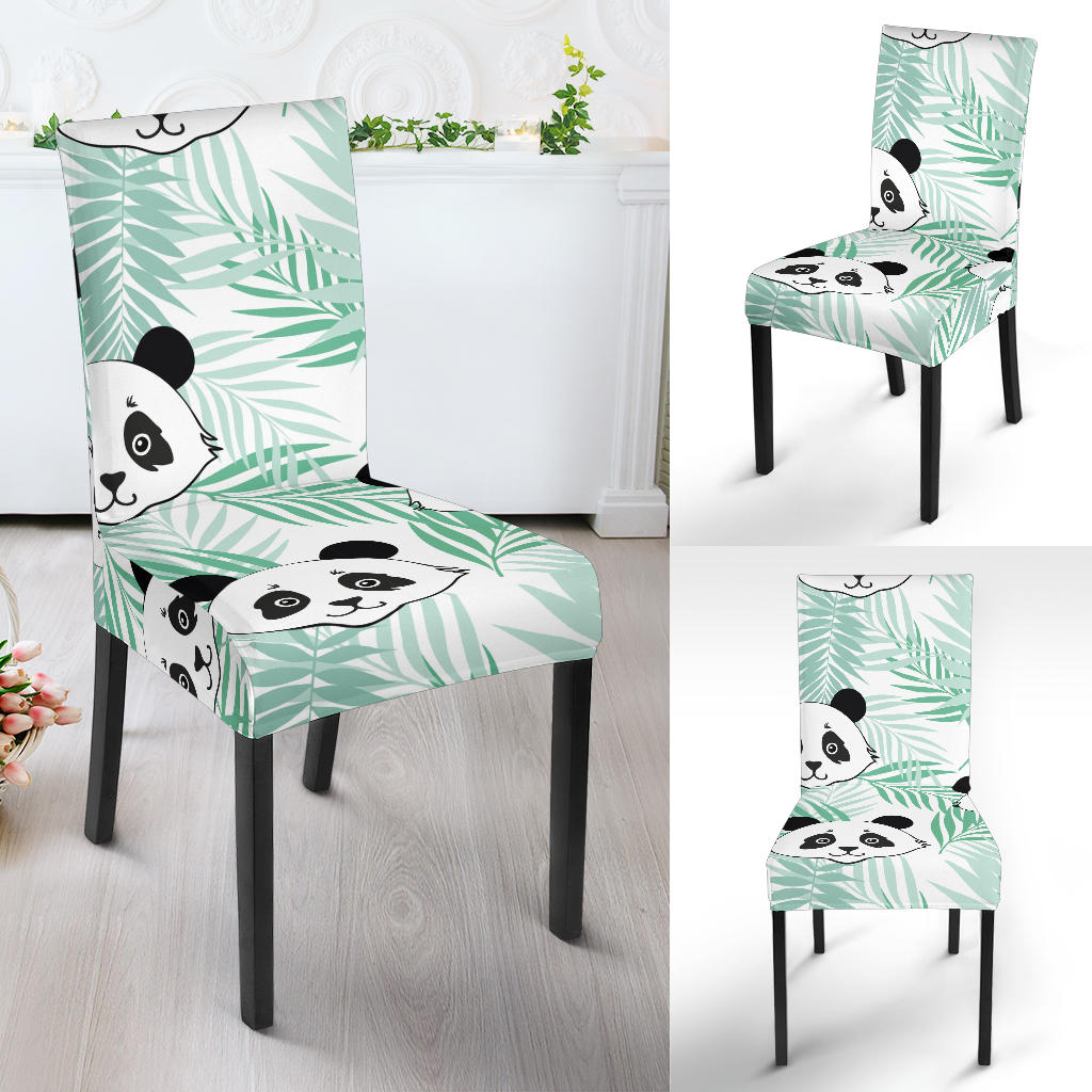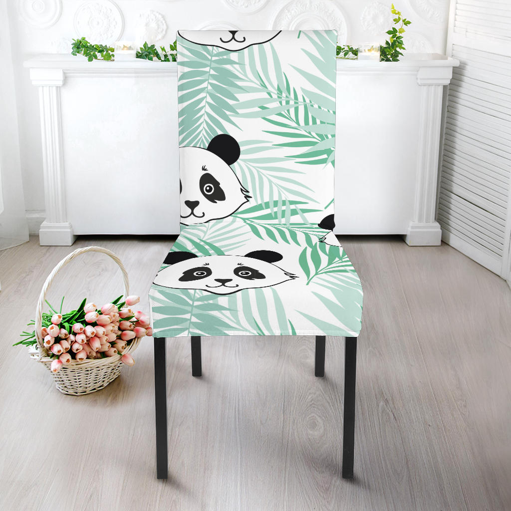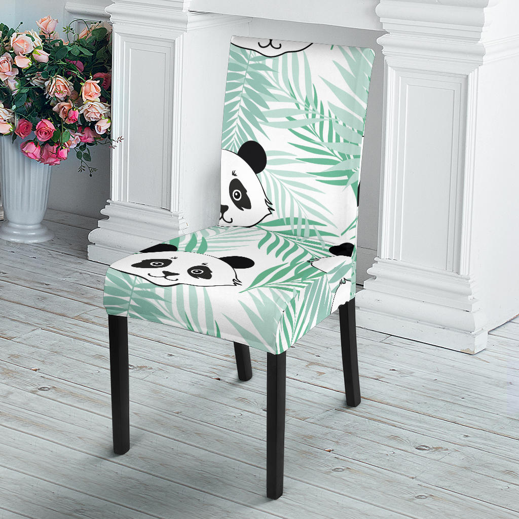 Panda Pattern Tropical Leaves Background Dining Chair Slipcover