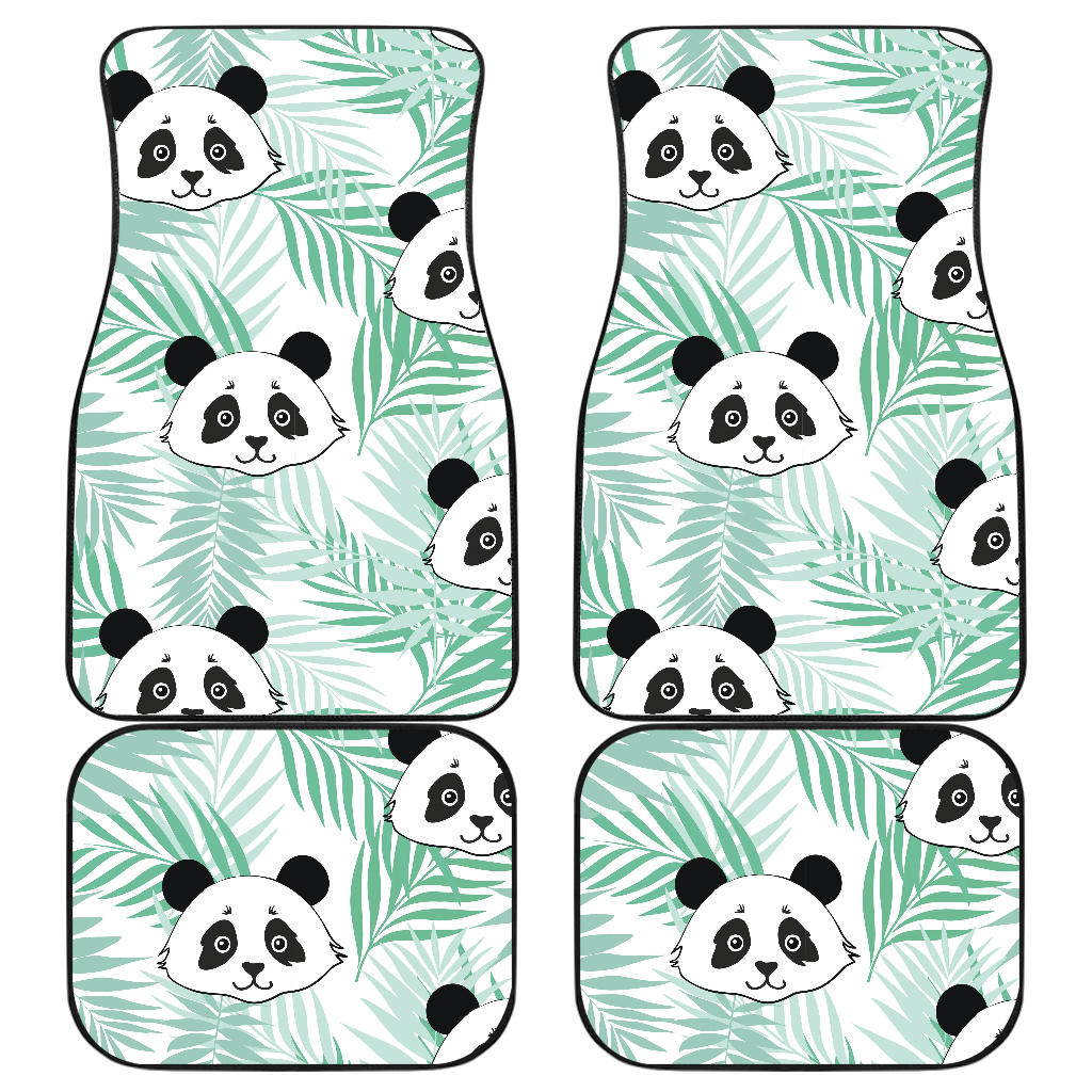 Panda Pattern Tropical Leaves Background Front And Back Car Mats