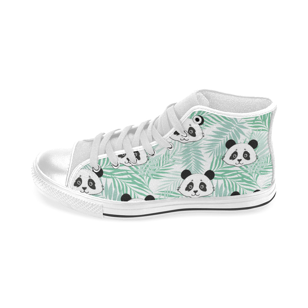 Panda pattern tropical leaves background Men's High Top Canvas Shoes White