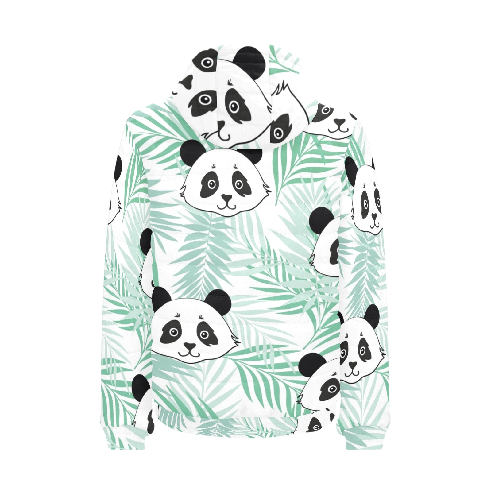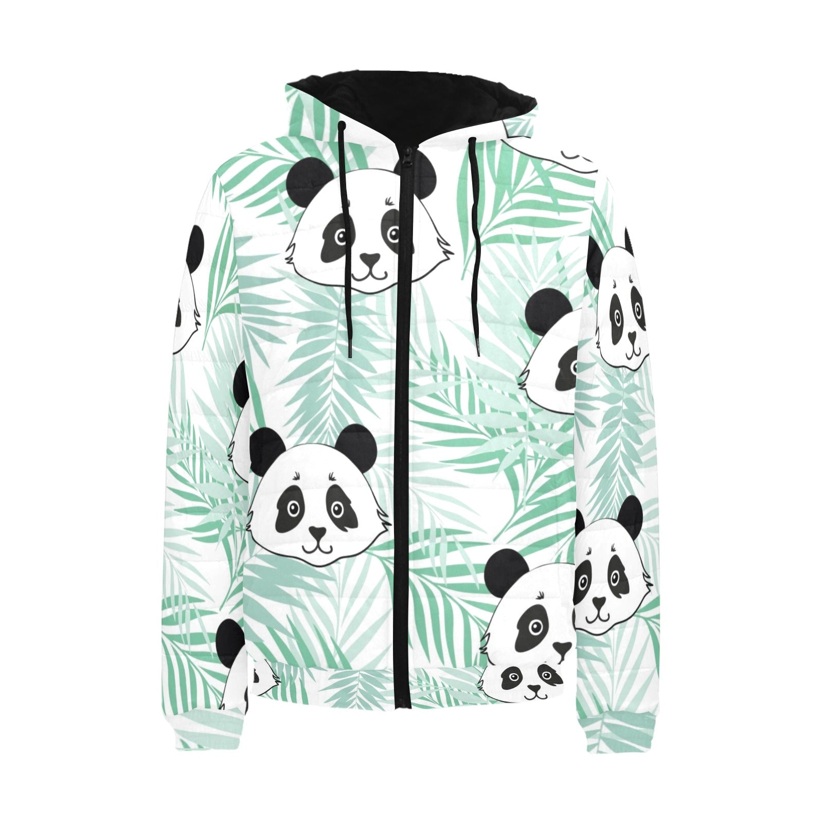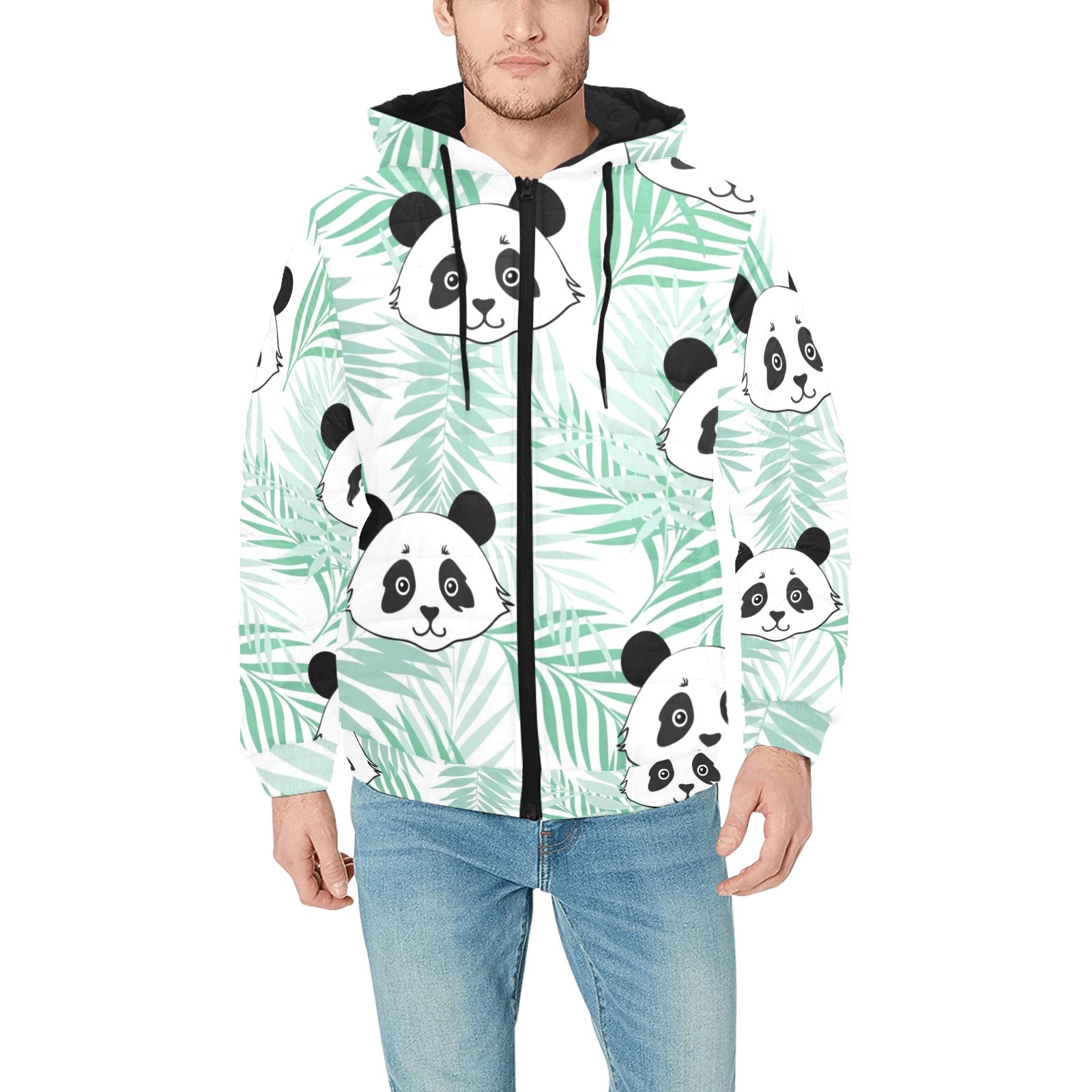Panda pattern tropical leaves background Men's Padded Hooded Jacket