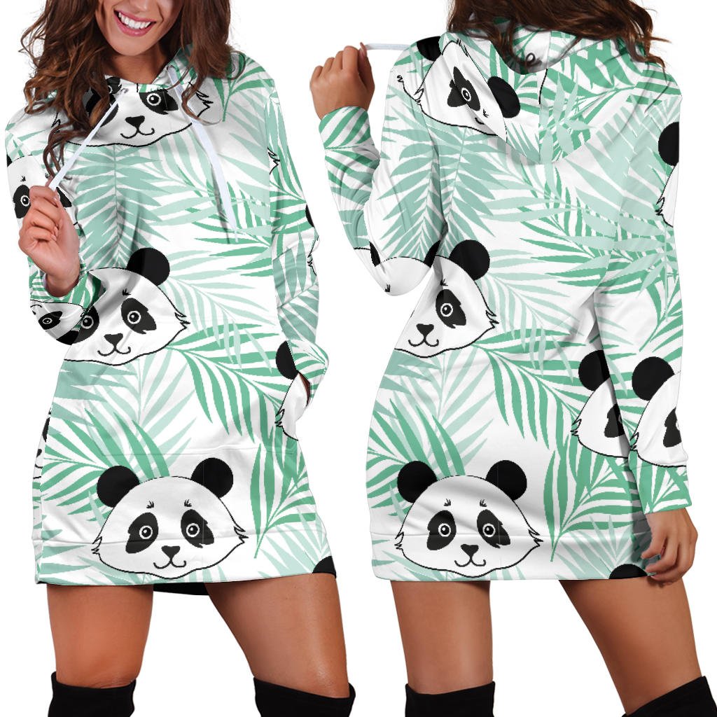 Panda Pattern Tropical Leaves Background Women'S Hoodie Dress
