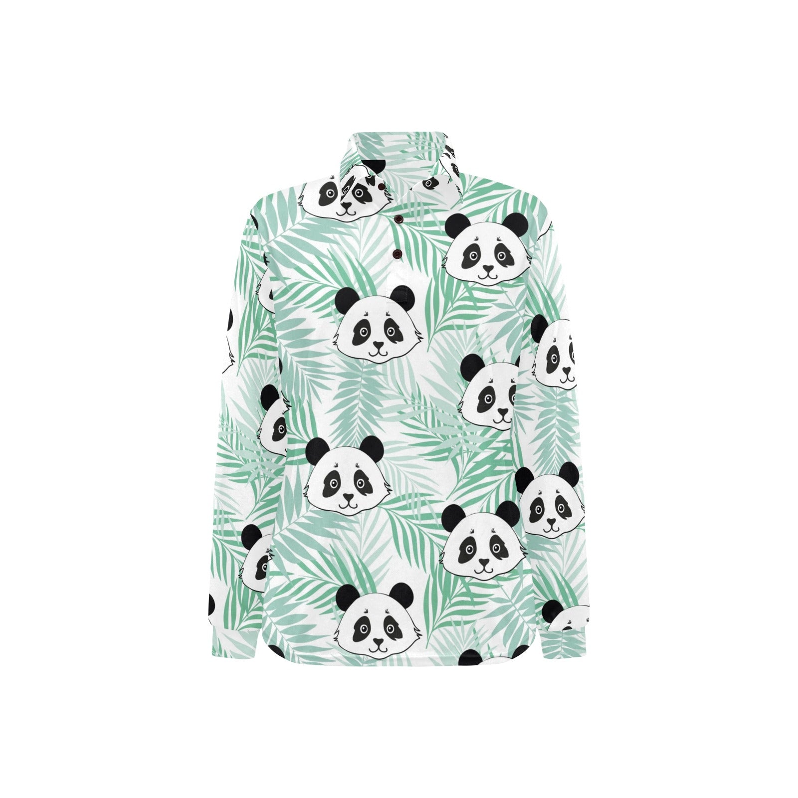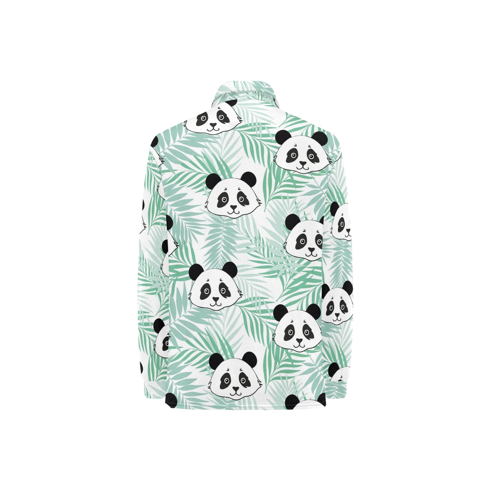 Panda pattern tropical leaves background Women's Long Sleeve Polo Shirt