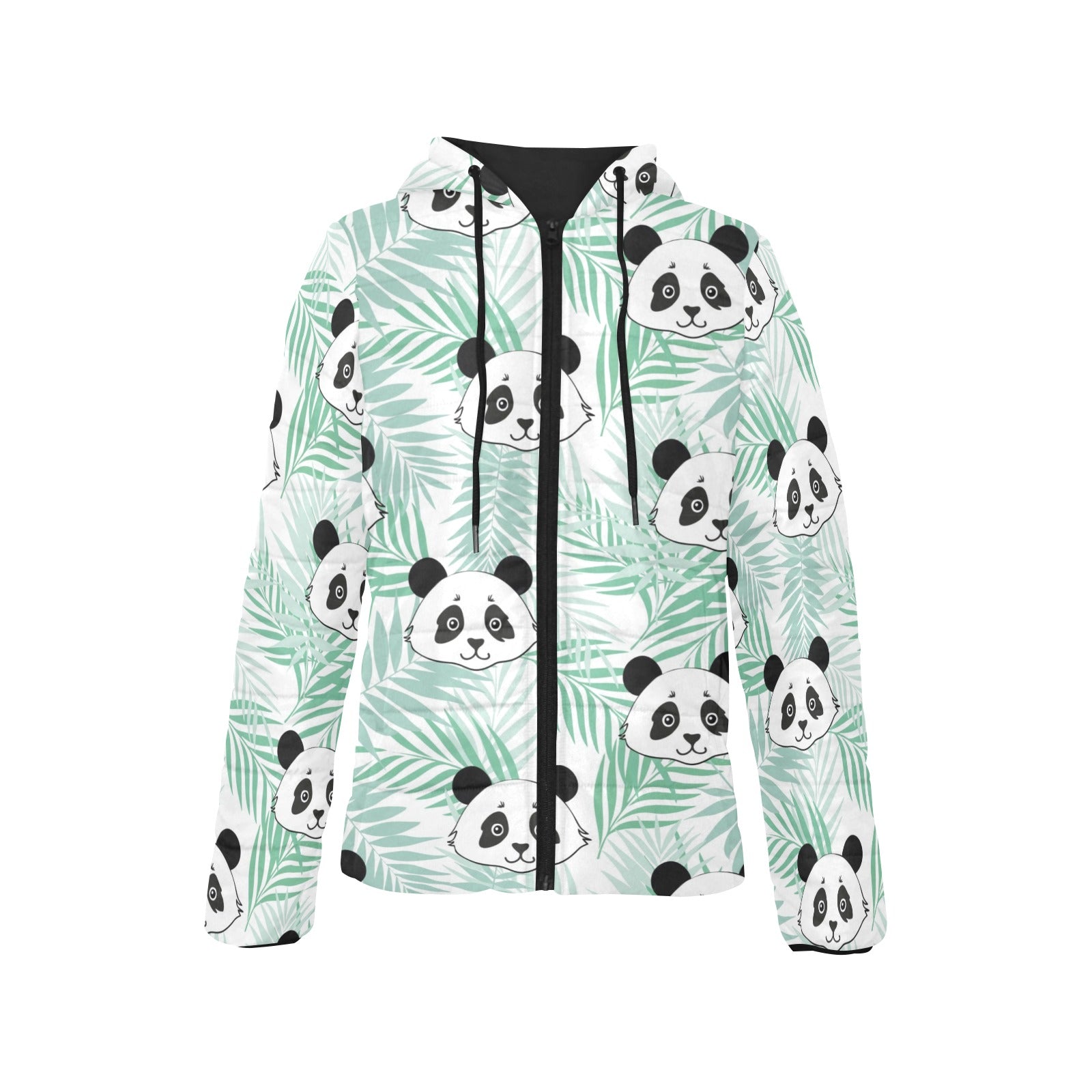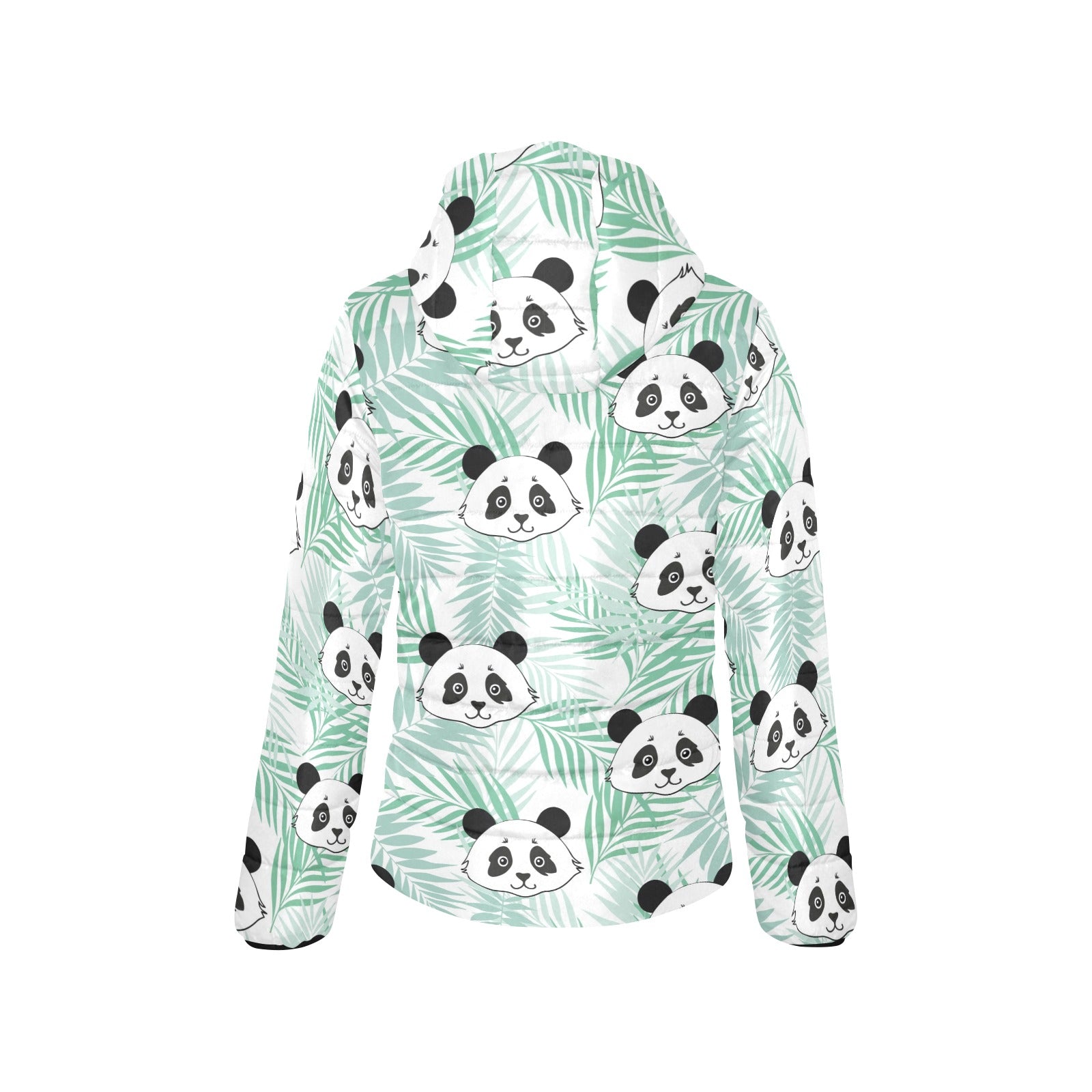 Panda pattern tropical leaves background Women's Padded Hooded Jacket