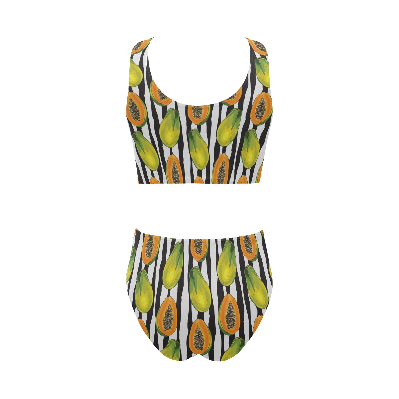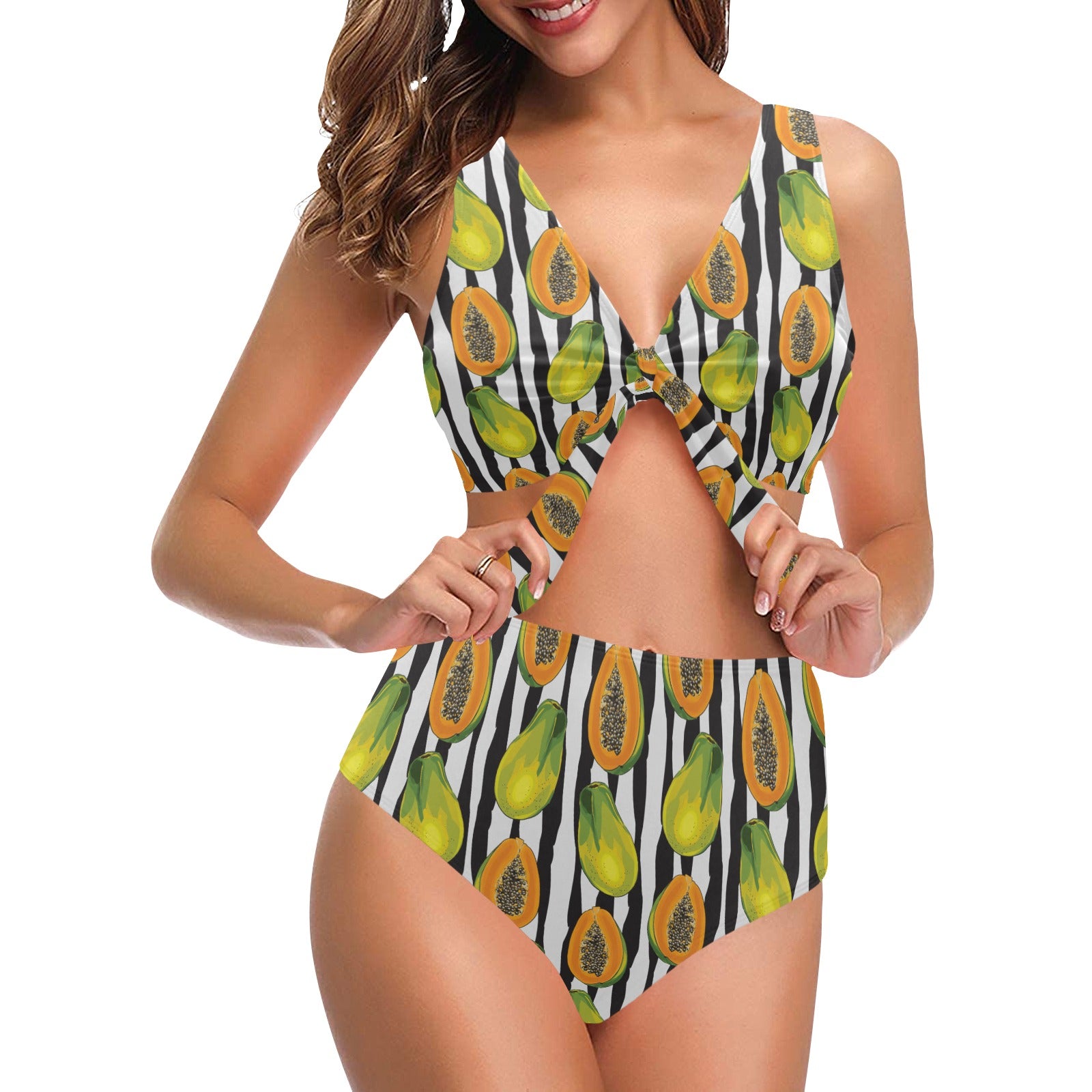 papaya design pattern Chest Bowknot High Waisted Bikini Swimsuit