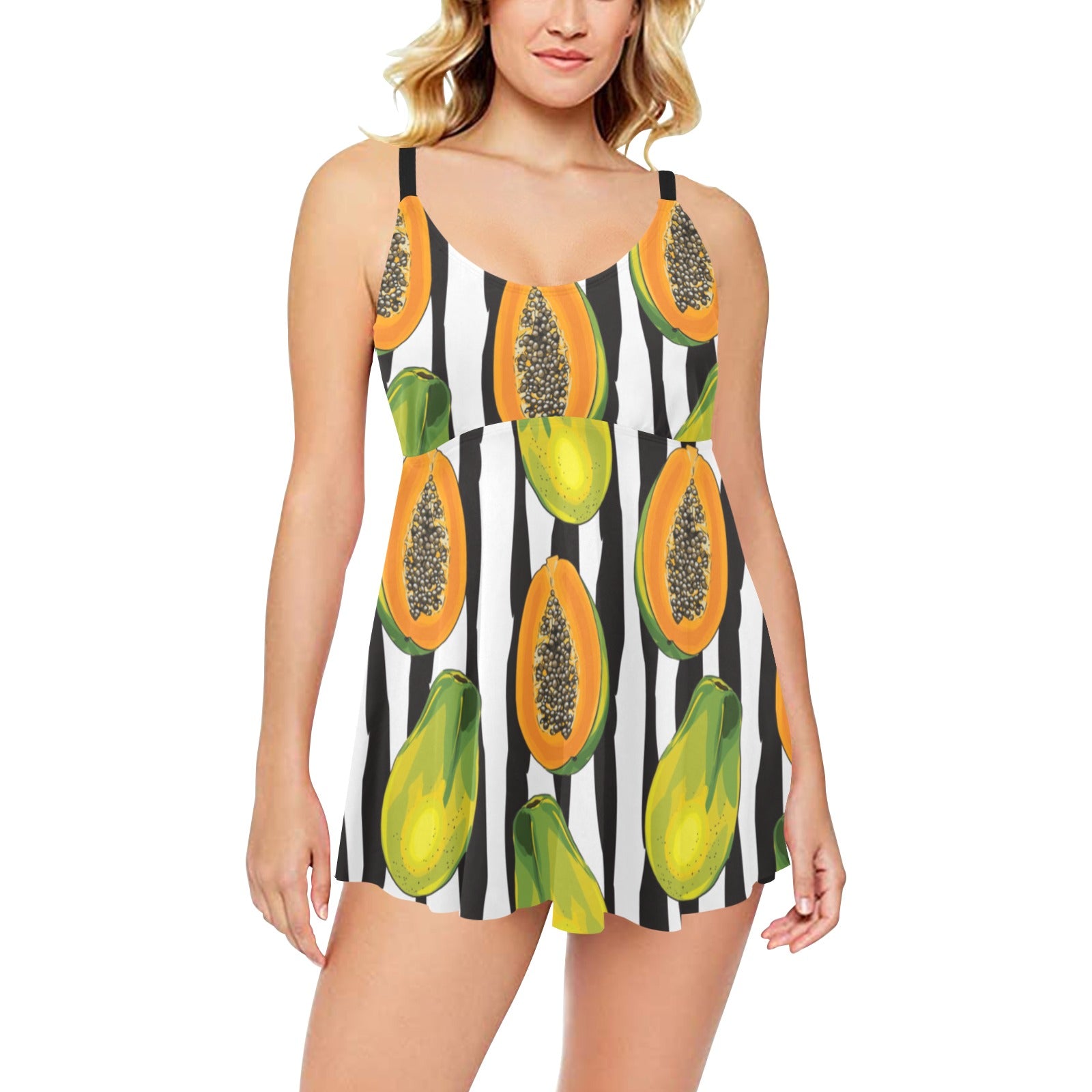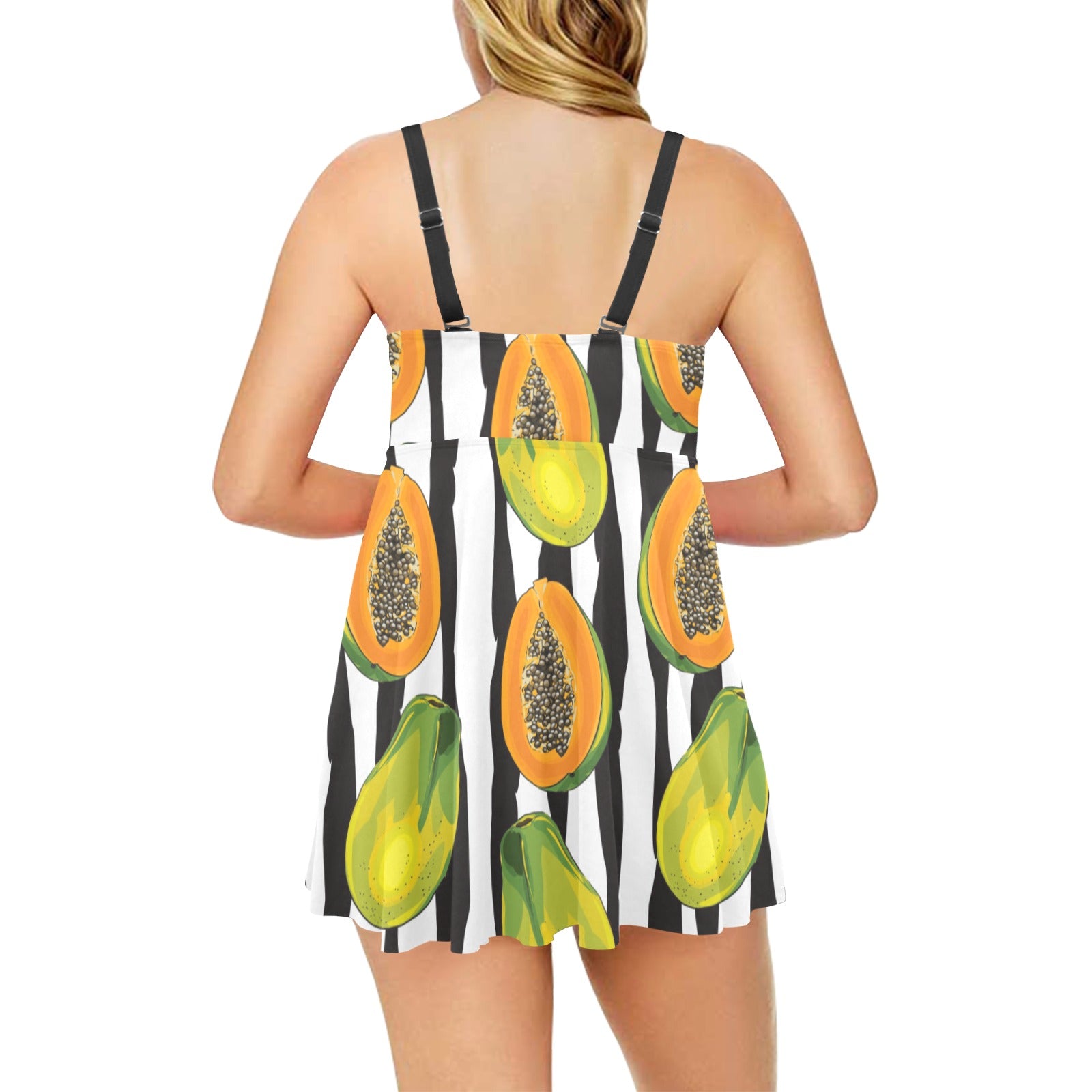 papaya design pattern Chest Sexy Pleated Two Piece Swim Dress