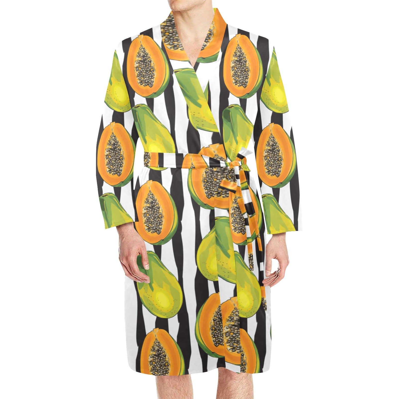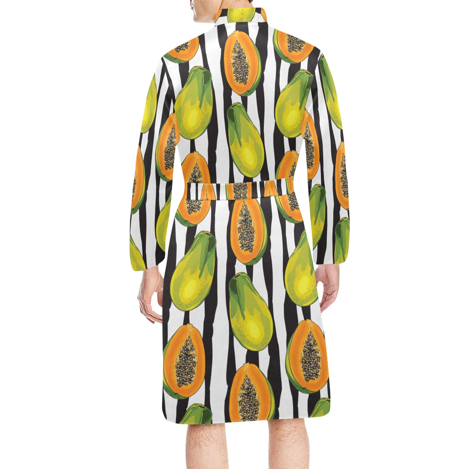 papaya design pattern Men's Long Sleeve Belted Night Robe