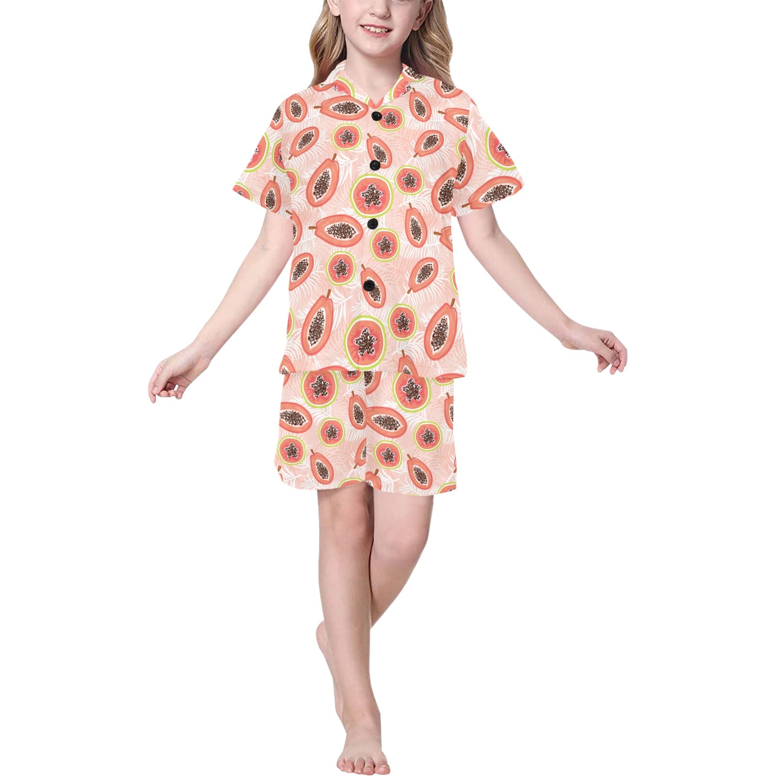papaya leaves pattern Kids' Boys' Girls' V-Neck Short Pajama Set