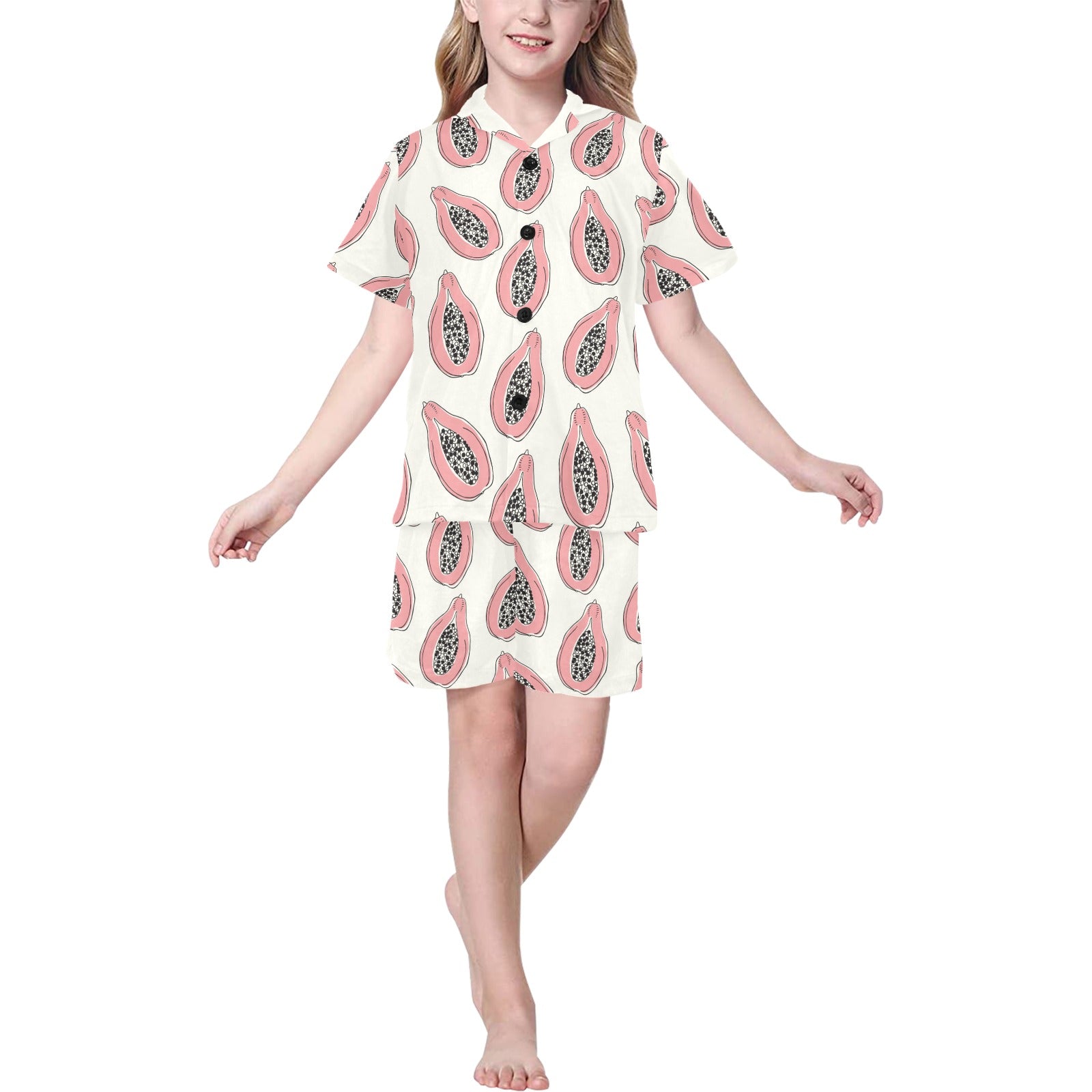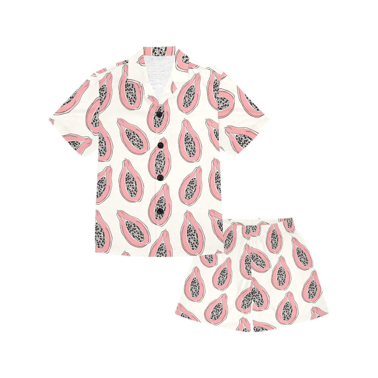 papaya pattern Kids' Boys' Girls' V-Neck Short Pajama Set