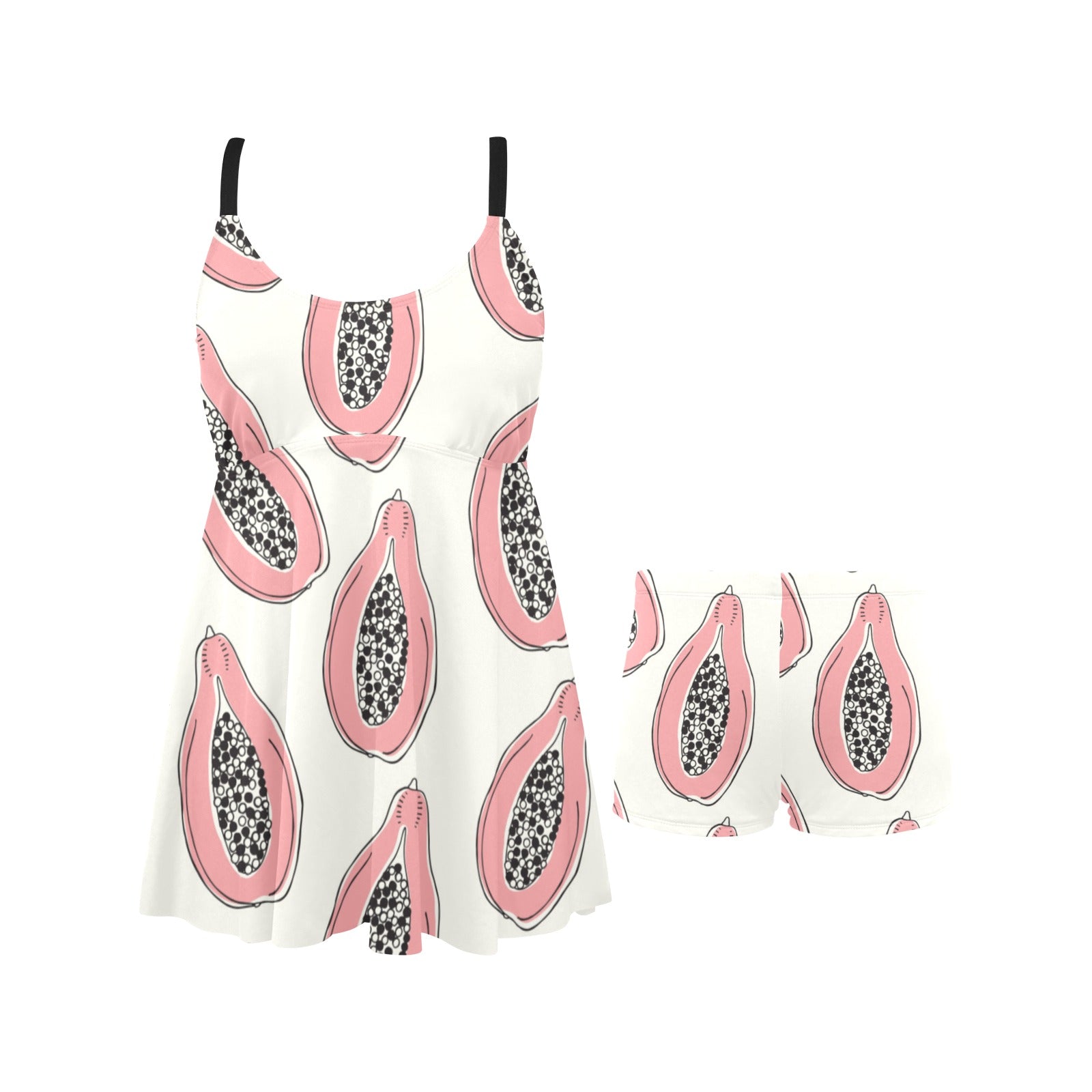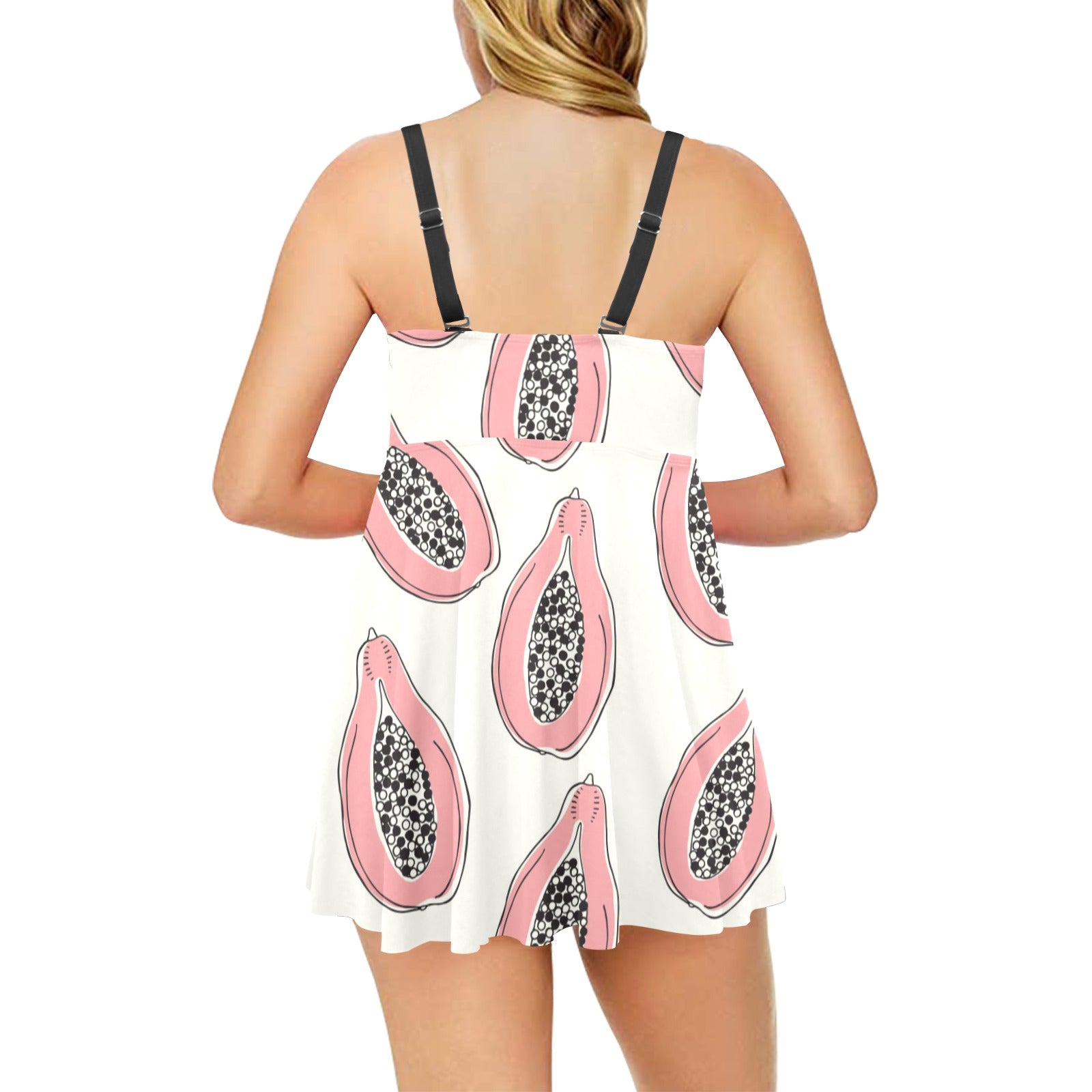 papaya pattern Chest Sexy Pleated Two Piece Swim Dress