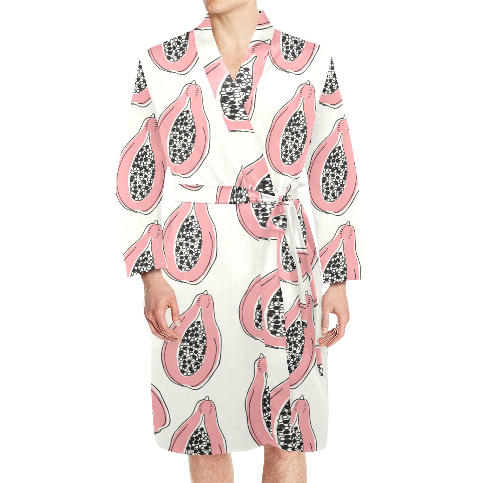 papaya pattern Men's Long Sleeve Belted Night Robe