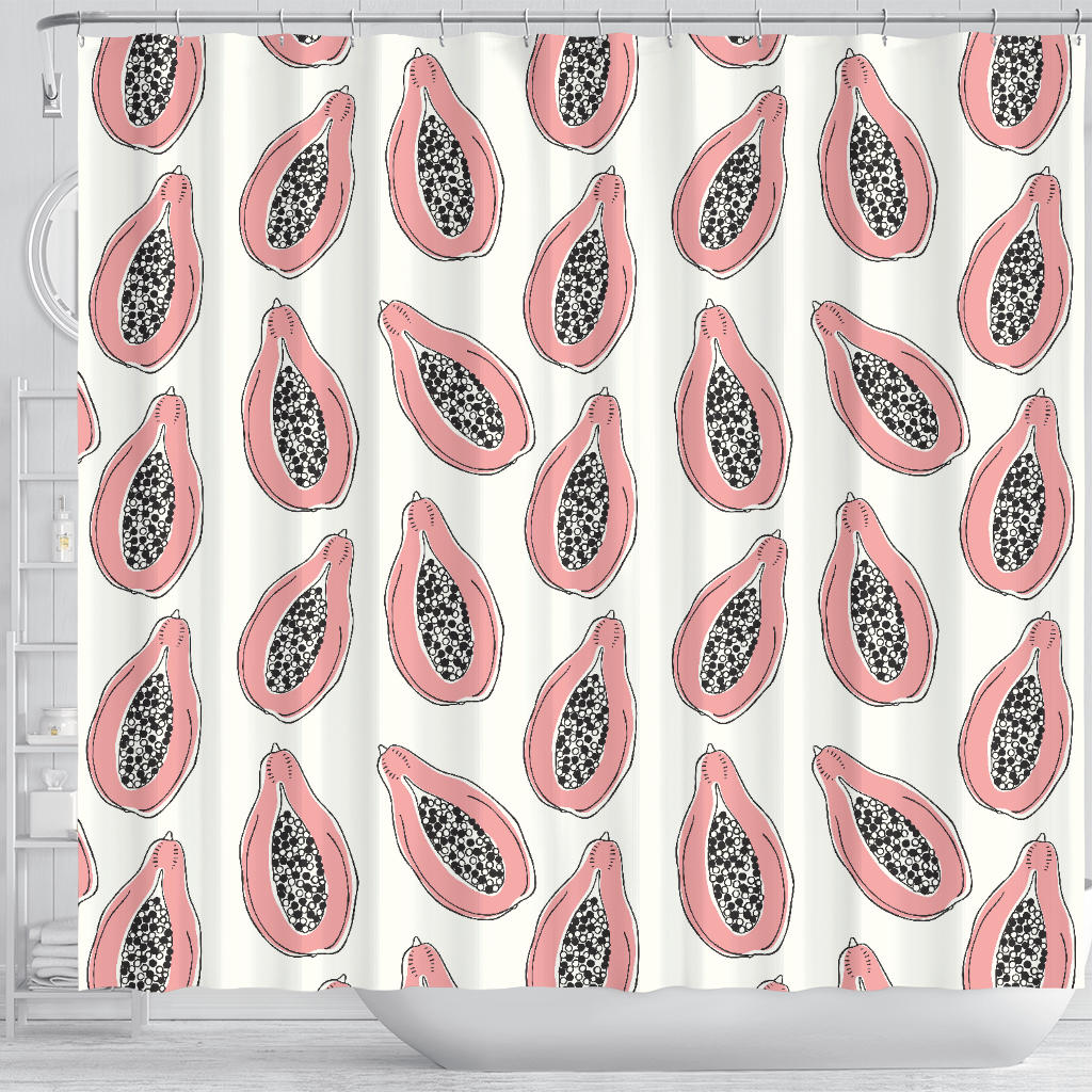 papaya pattern Shower Curtain is a uniqued design and limited item. It made to order, hand printed, and sewn with love in our factory.