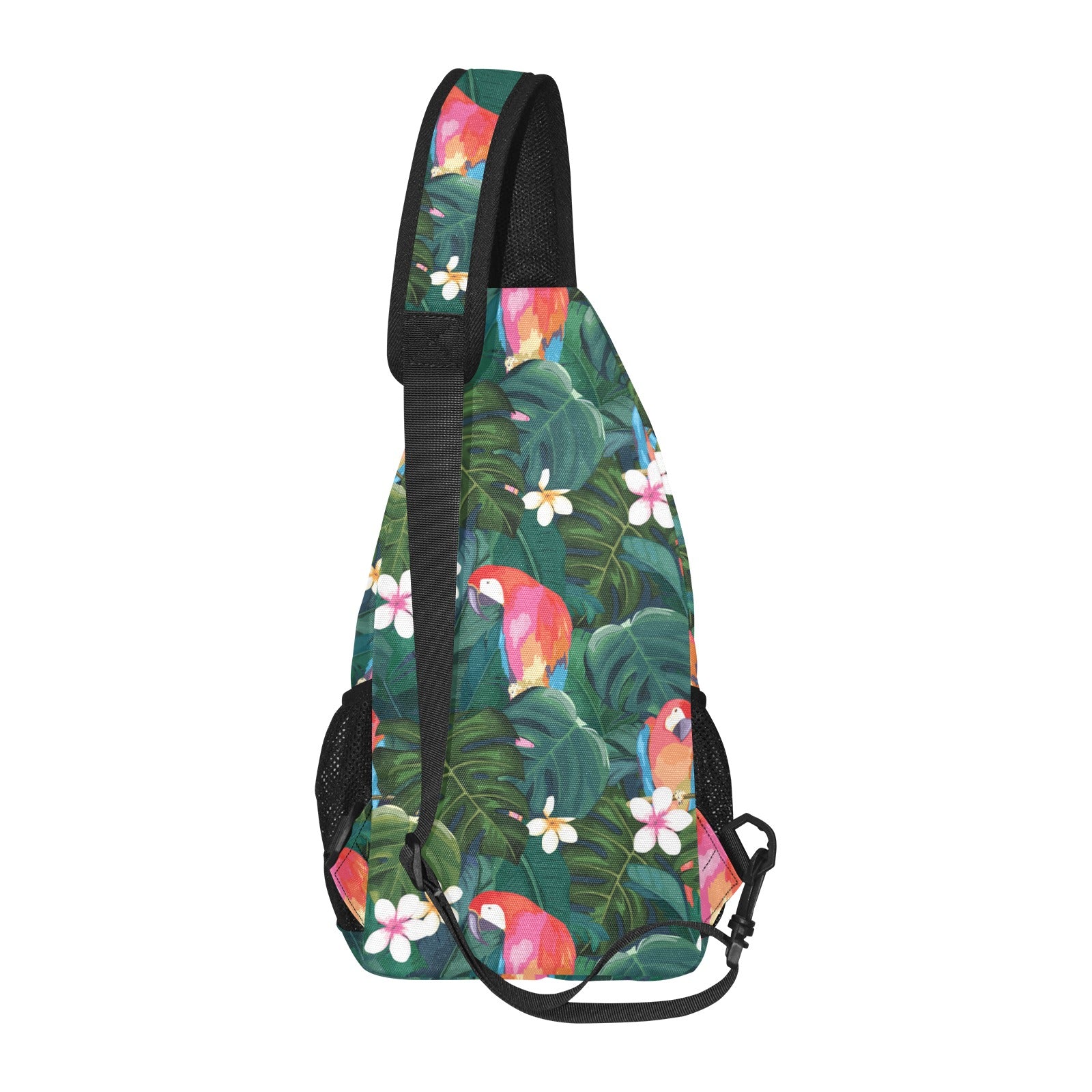 Parrot Palm tree leaves flower hibiscus pattern All Over Print Chest Bag
