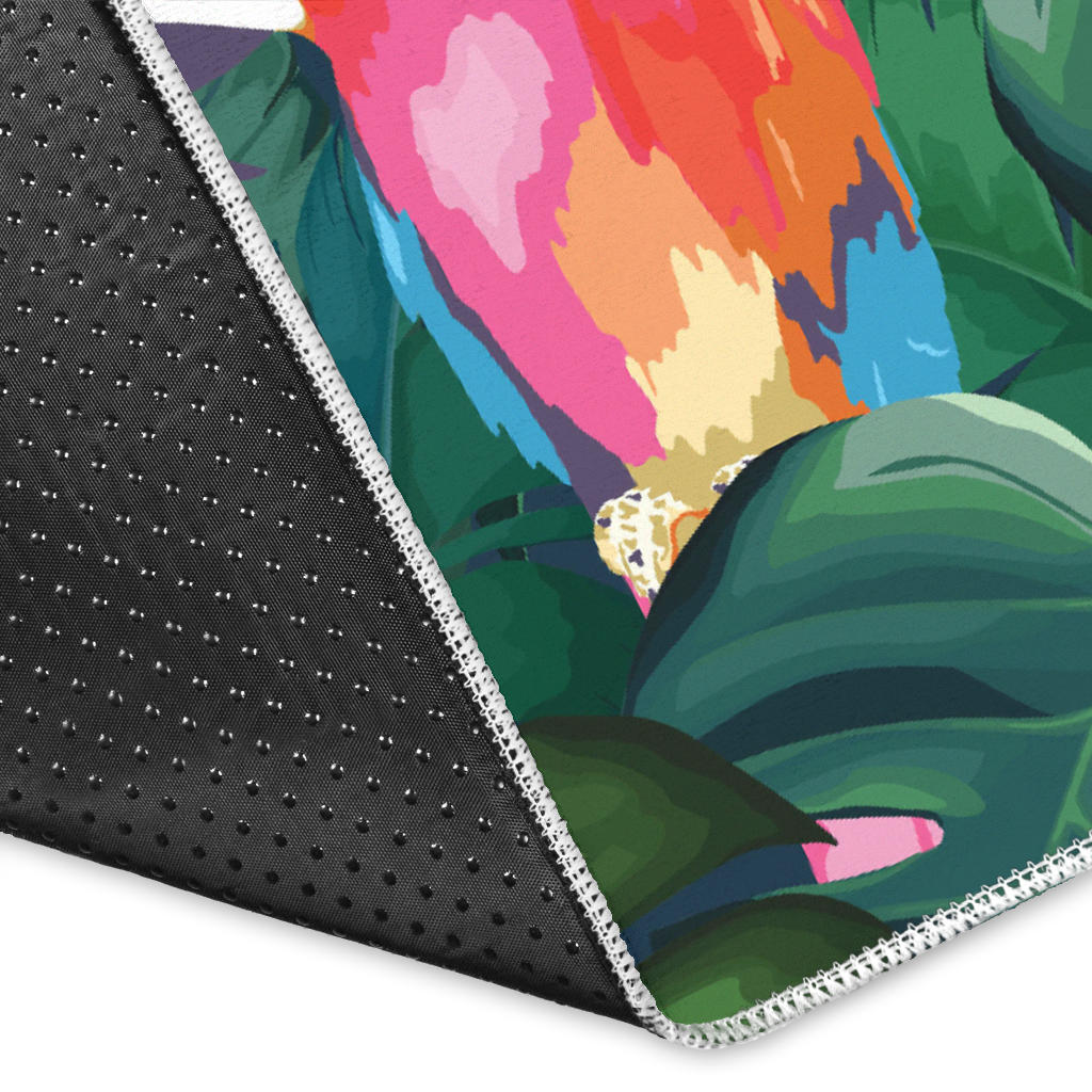 Parrot Palm tree leaves flower hibiscus pattern Area Rug is a uniqued design and limited item. It made to order, hand printed, and sewn with love in our factory.