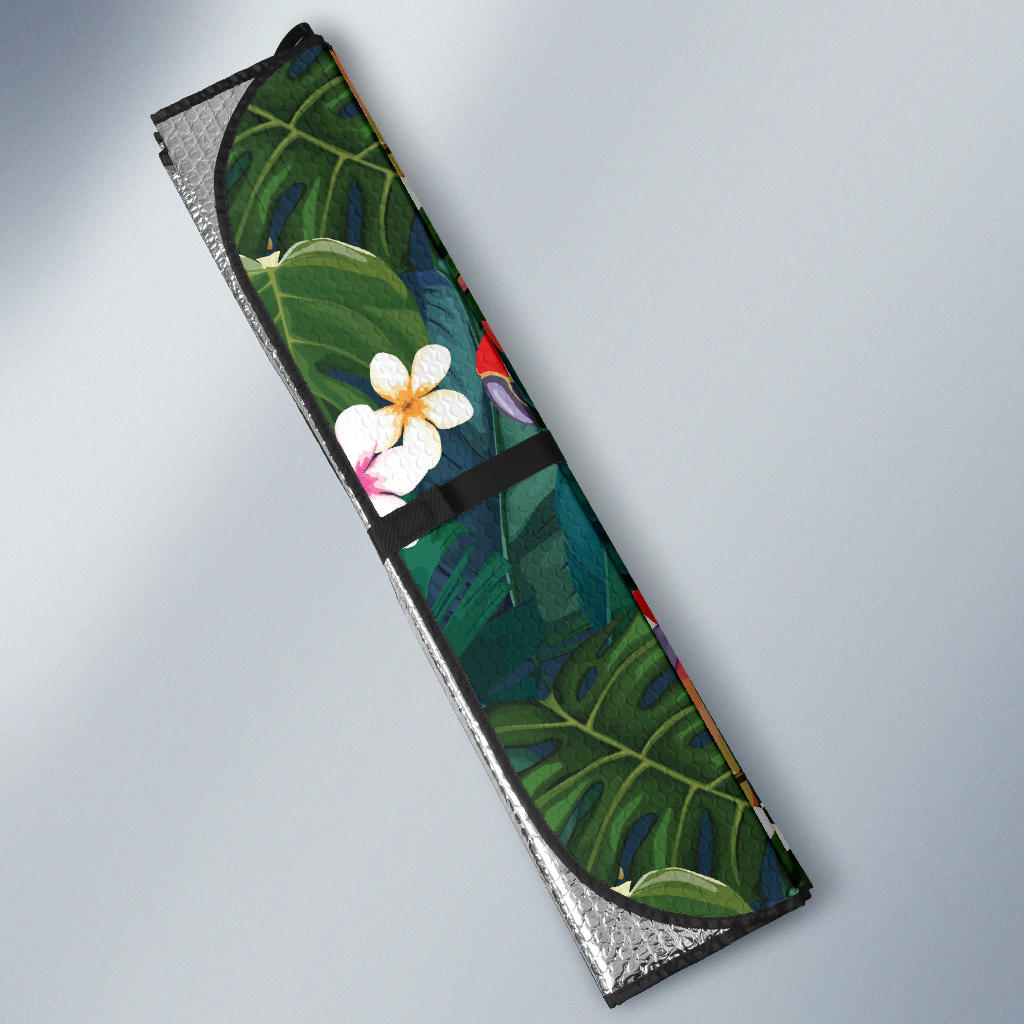 Parrot Palm Tree Leaves Flower Hibiscus Pattern Car Sun Shade