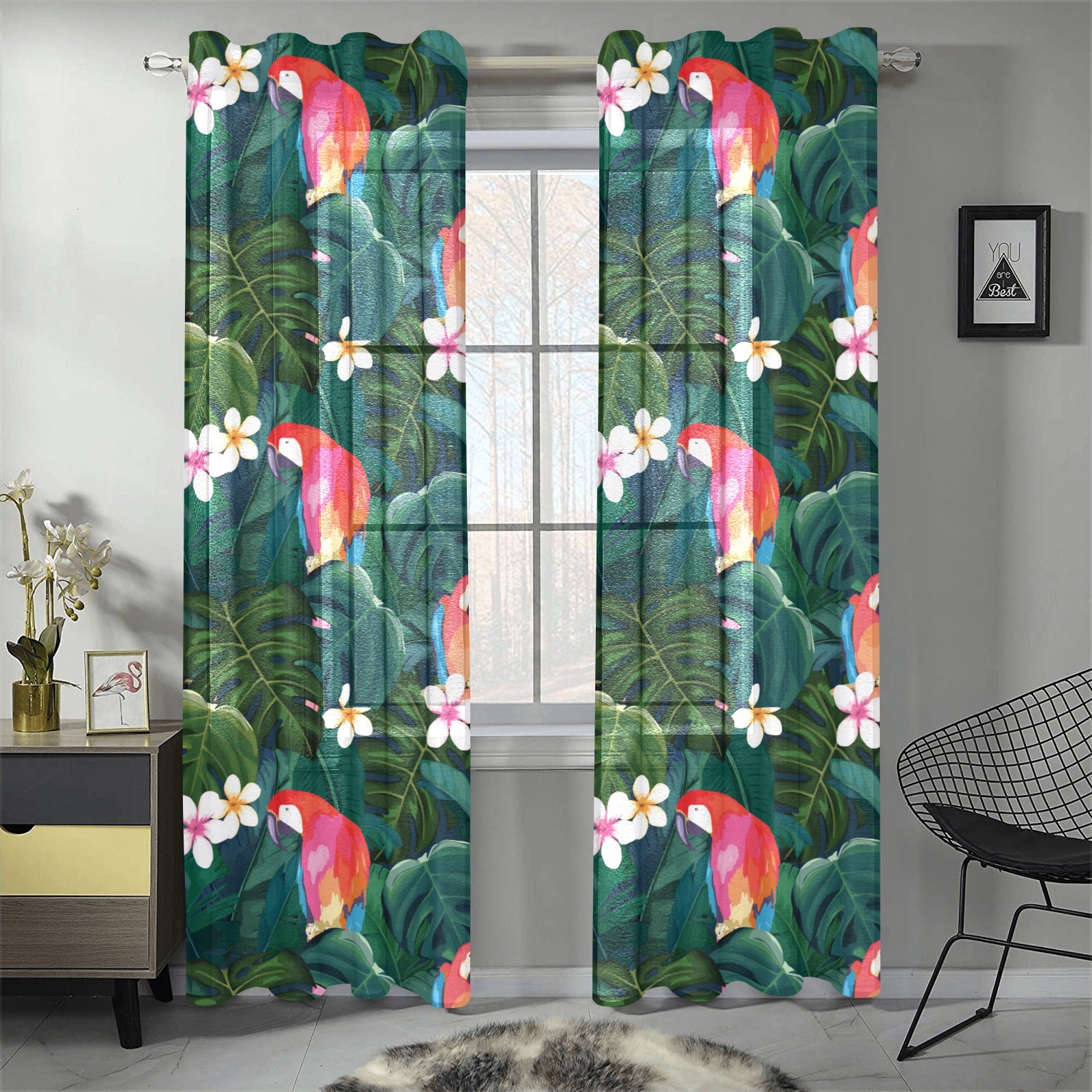 Parrot Palm tree leaves flower hibiscus pattern Gauze Curtain