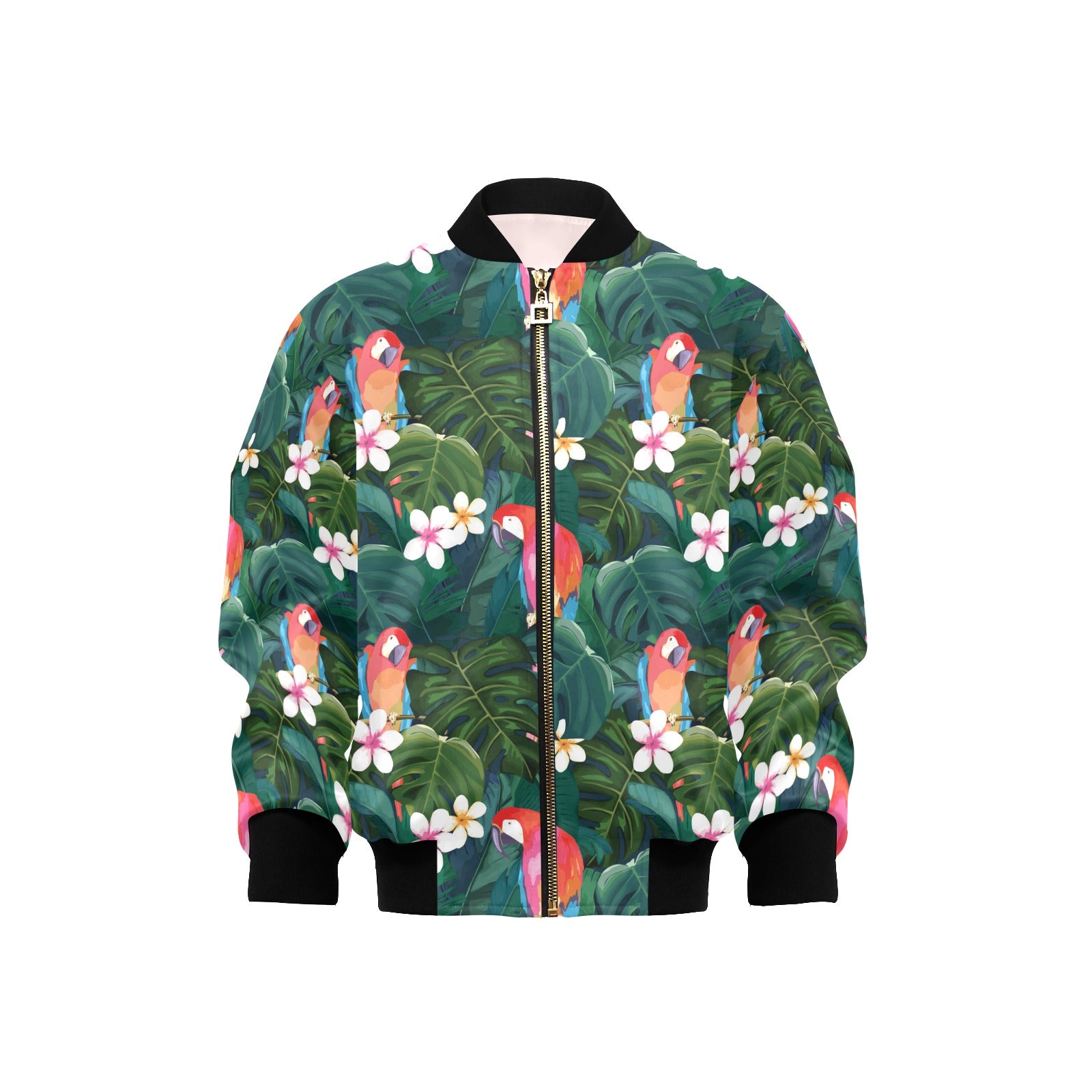 Parrot Palm tree leaves flower hibiscus pattern Kids' Boys' Girls' Bomber Jacket
