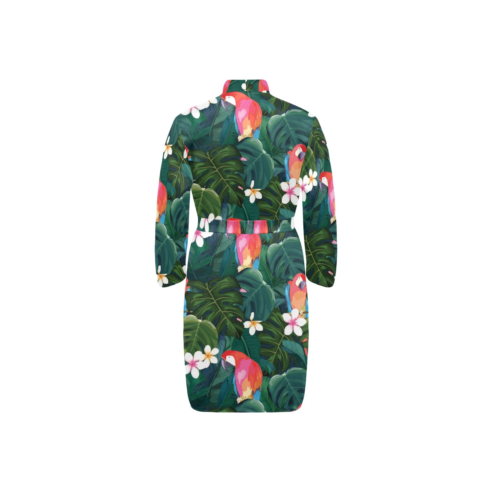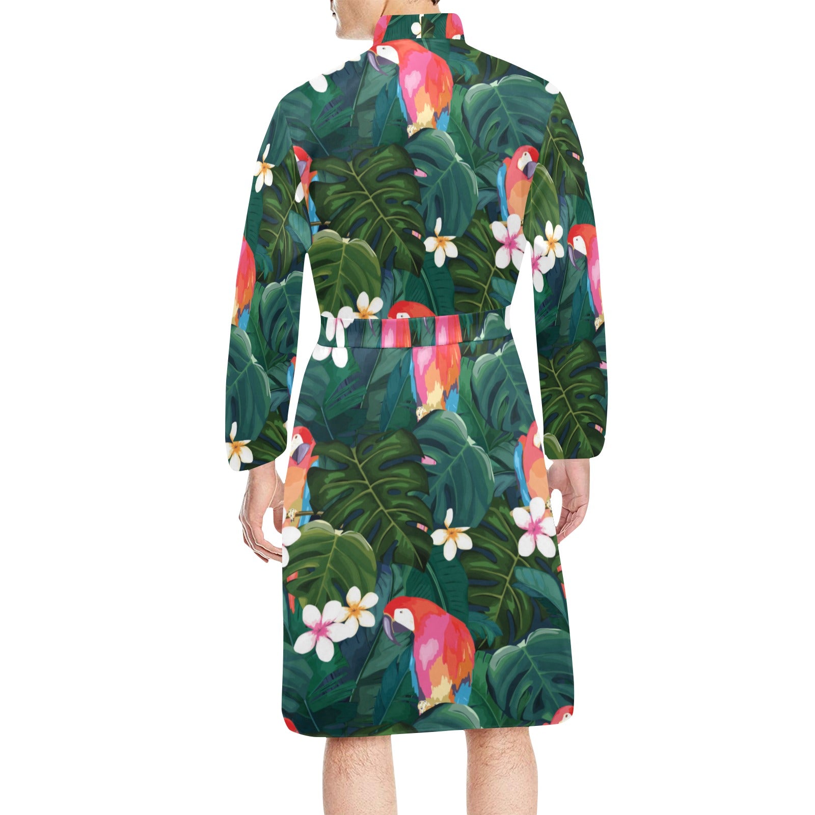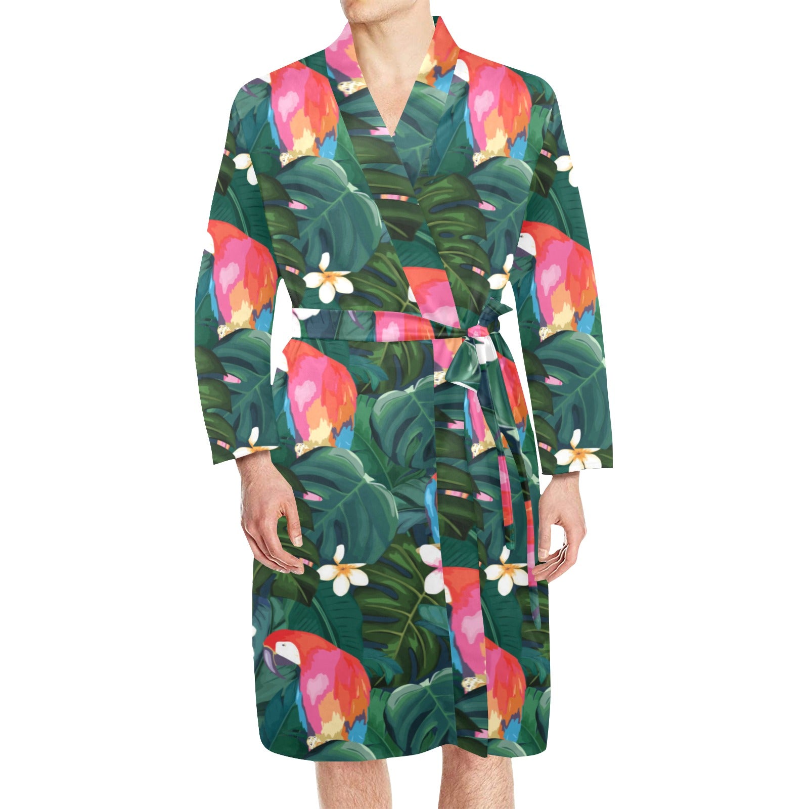 Parrot Palm tree leaves flower hibiscus pattern Men's Long Sleeve Belted Night Robe