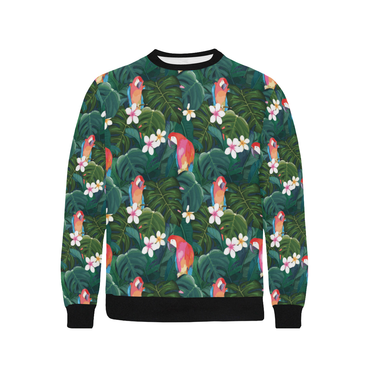 Parrot Palm tree leaves flower hibiscus pattern Men's Crew Neck Sweatshirt