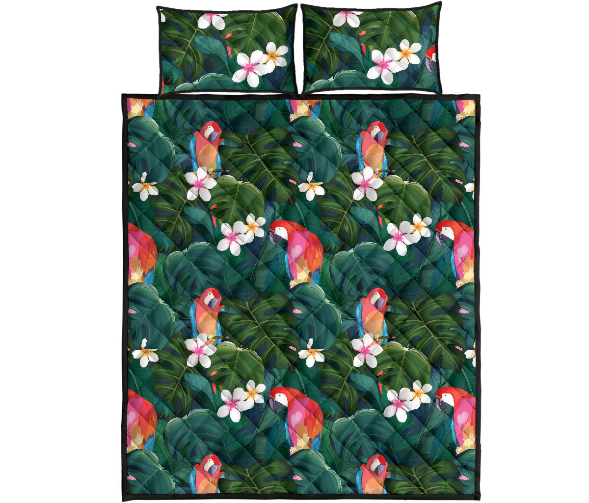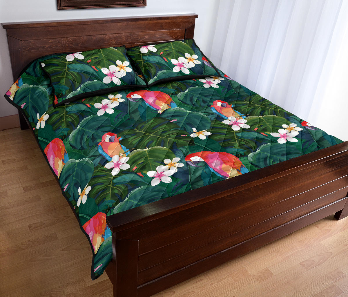 Parrot Palm tree leaves flower hibiscus pattern Quilt Bed Set